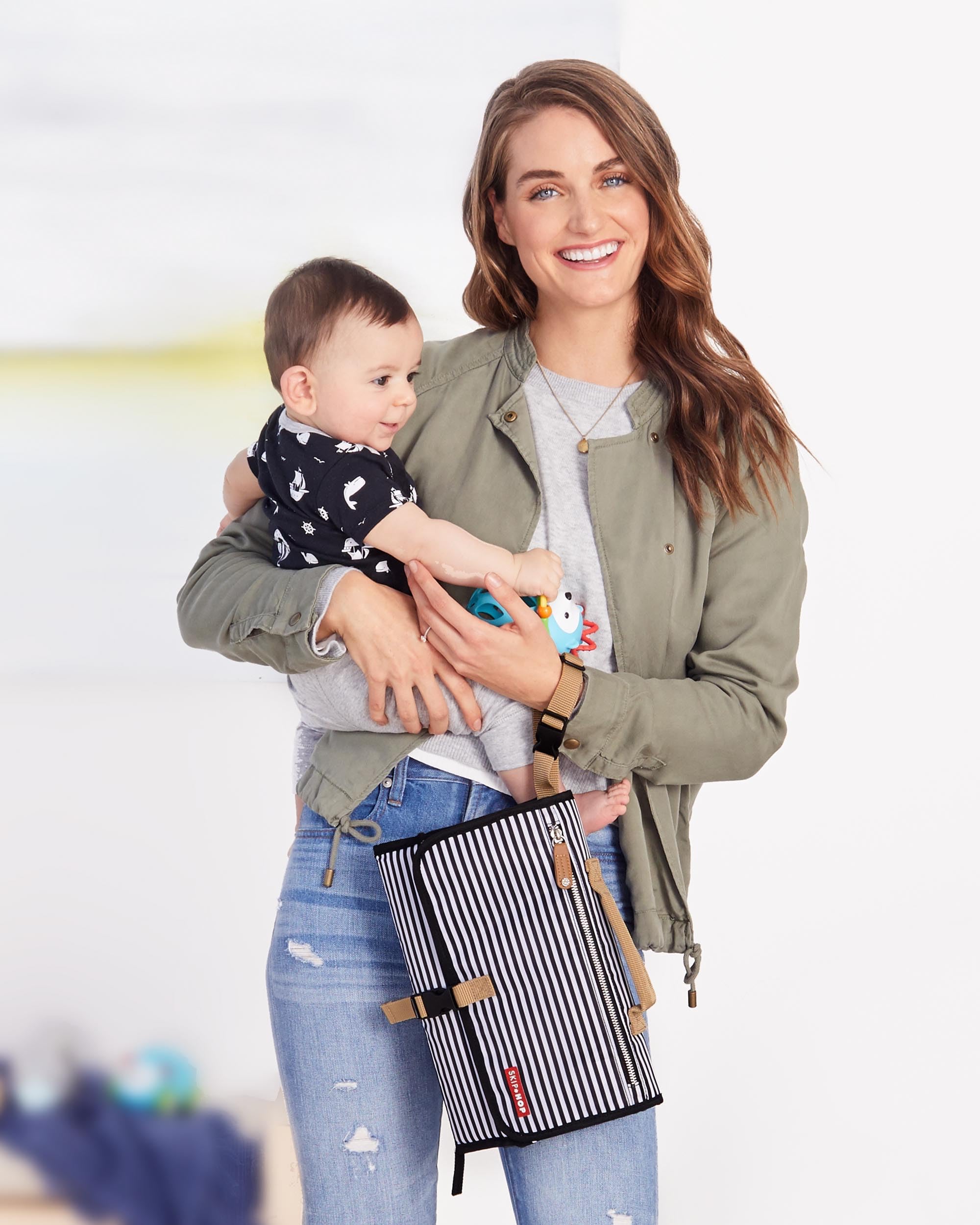Our ultra-convenient clutch features a wipe-clean, zip-off changing pad and translucent wipes case for timely refills