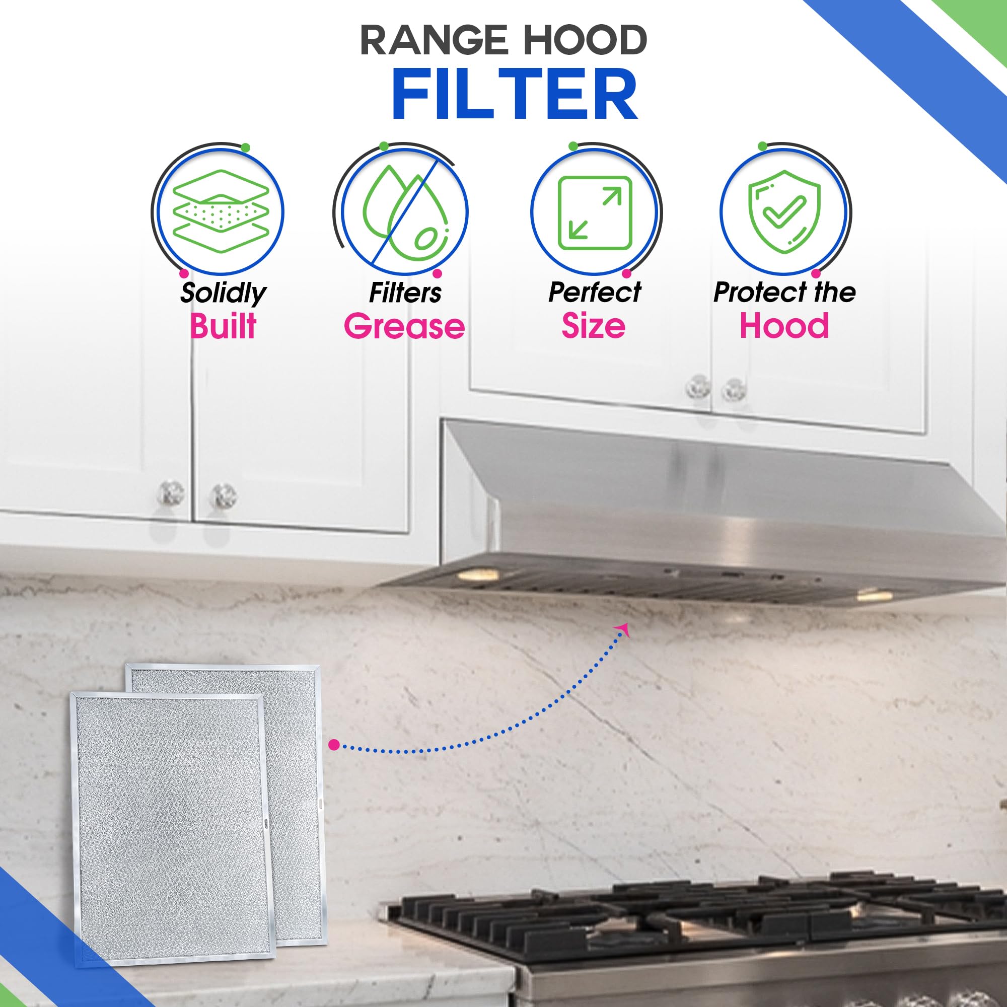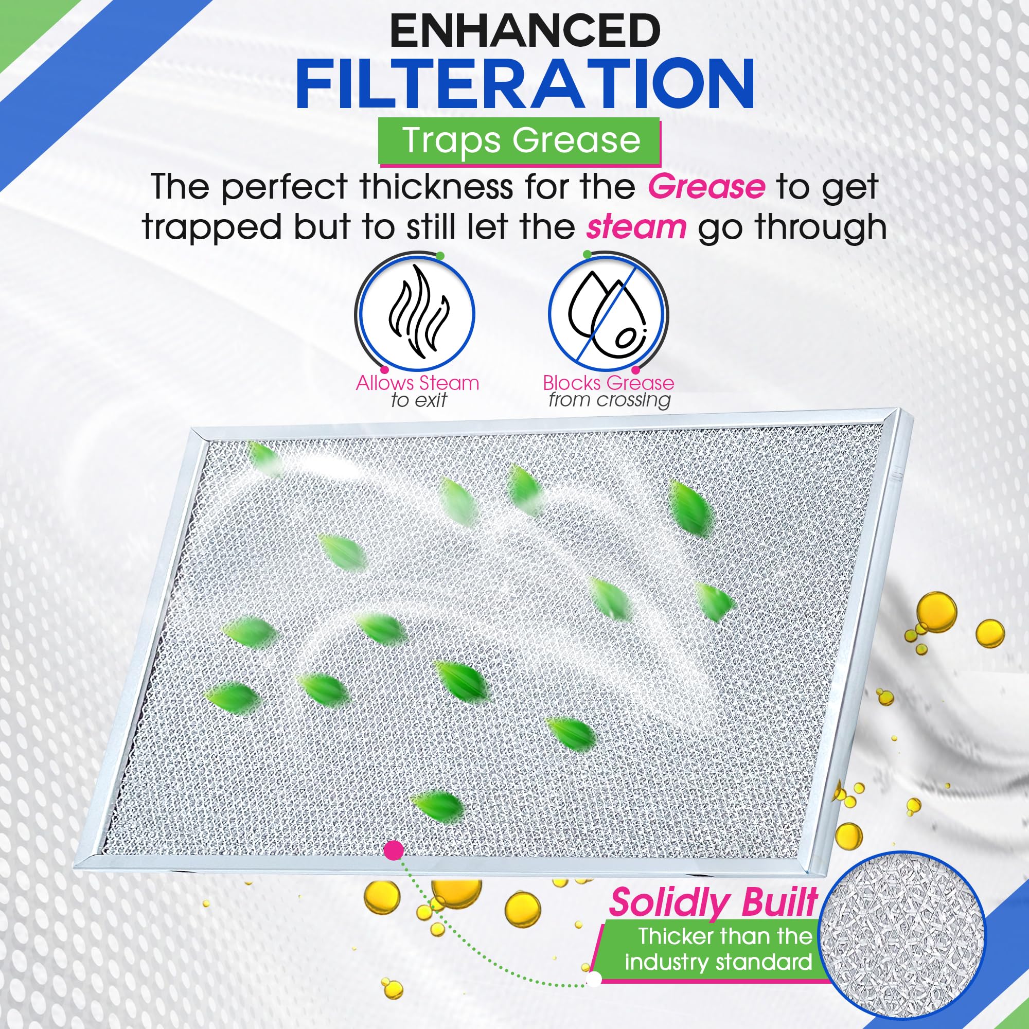THICKER AND BETTER: Our allure range hood filter is expertly constructed and enhanced to be thicker than the industry standard enabling our stove vent filter to stop more grease from entering.
