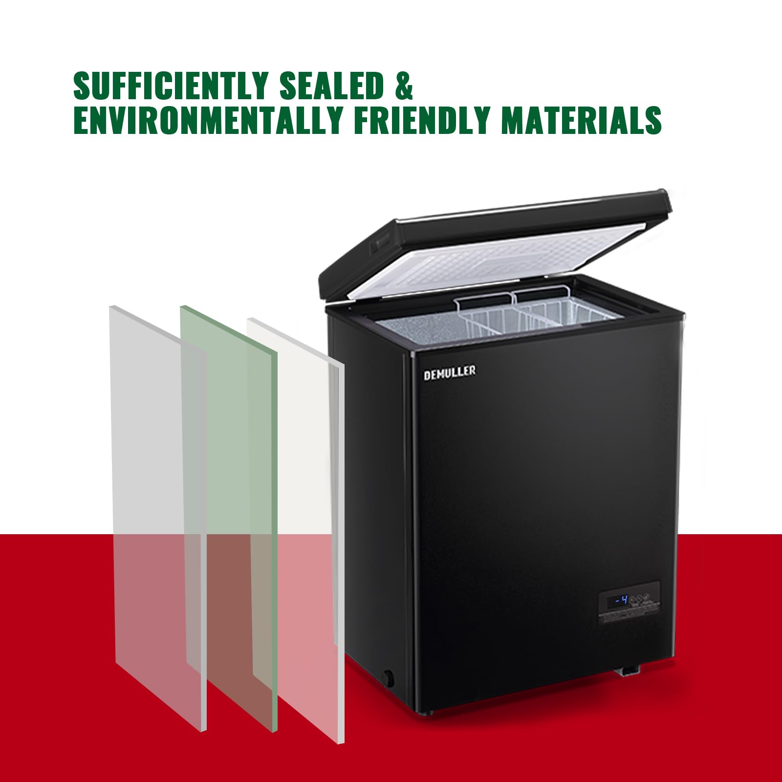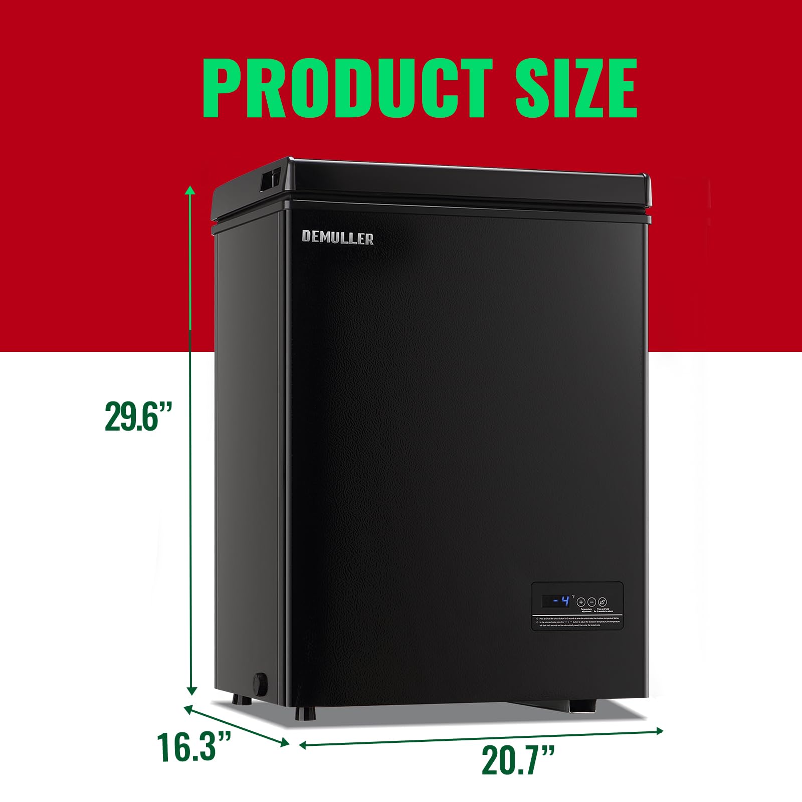 Compact Size but Big Convenience: DEMULLER 3.5 cubic feet free standing chest freezer is the perfect size for smaller living spaces, such as apartments, dorm rooms, or RVs. Its compact design makes it easy to fit in any room, while still providing ample storage space for your frozen goods