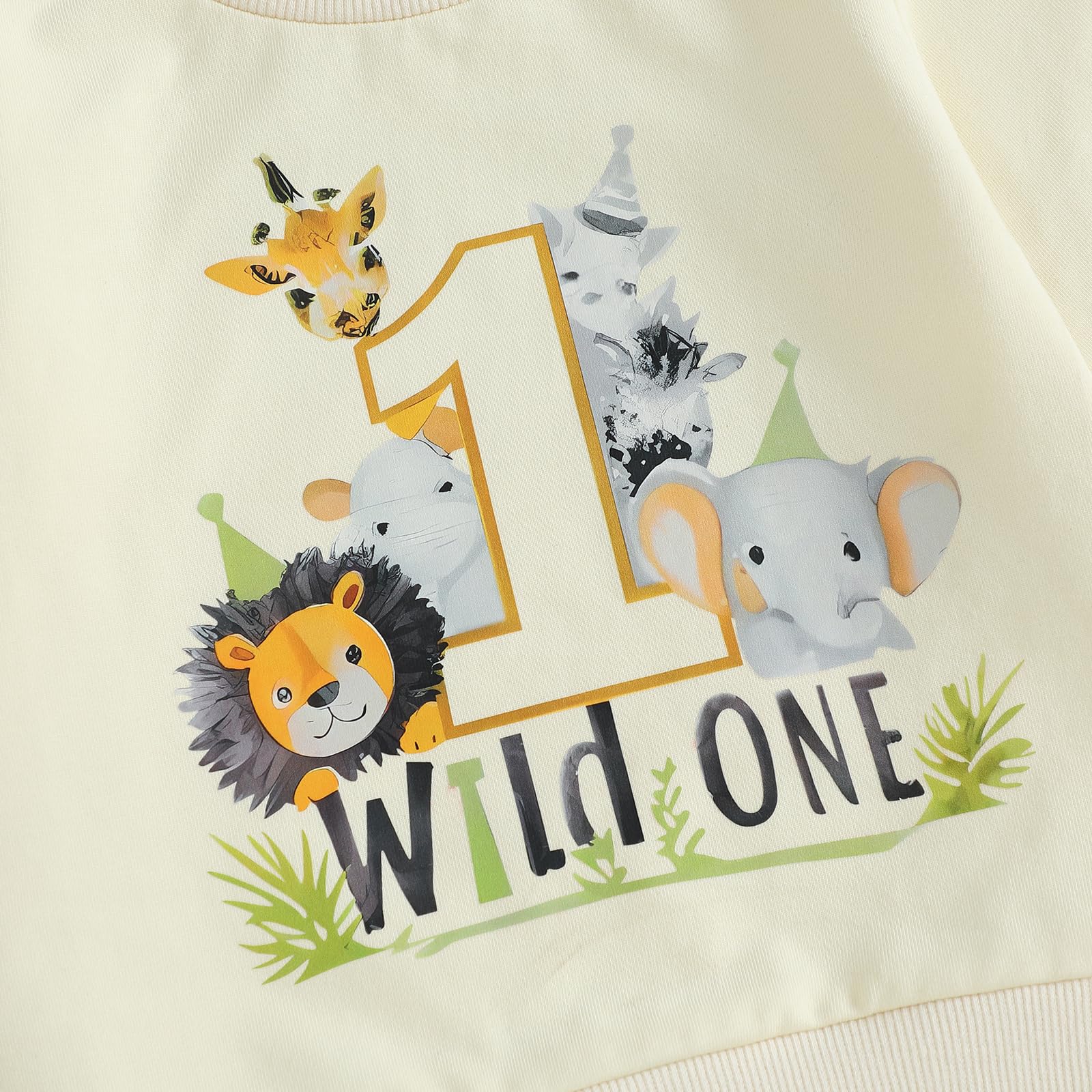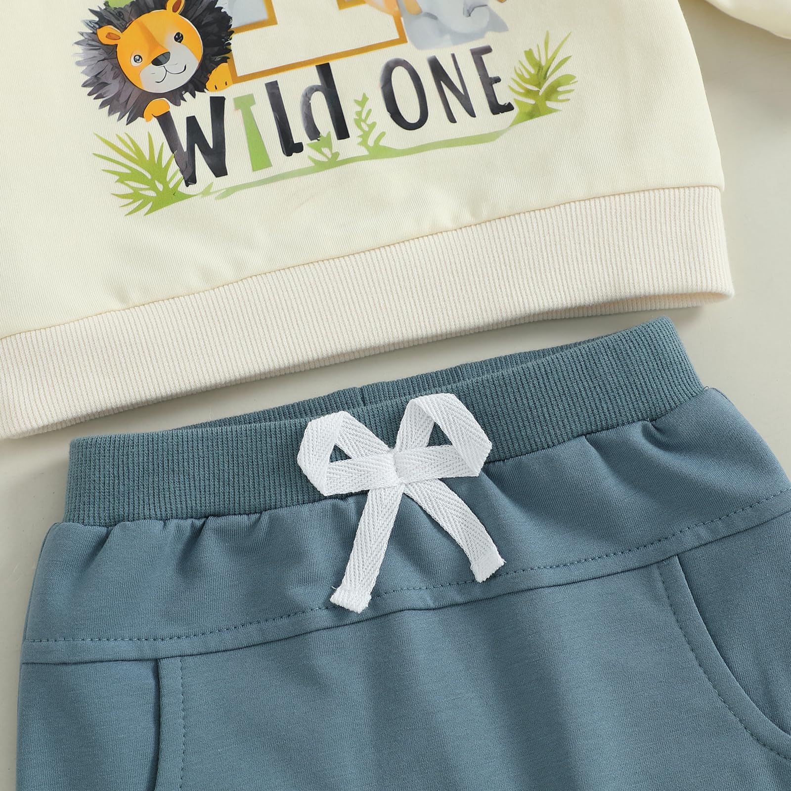 Design: First birthday outfit boy, my first birthday boy outfit features wild one number animal print, long sleeve baby crewneck sweatshirt and elastic waist solid pockets pants, super cute and trendy sweatsuit for spring,fall and winter casual wear