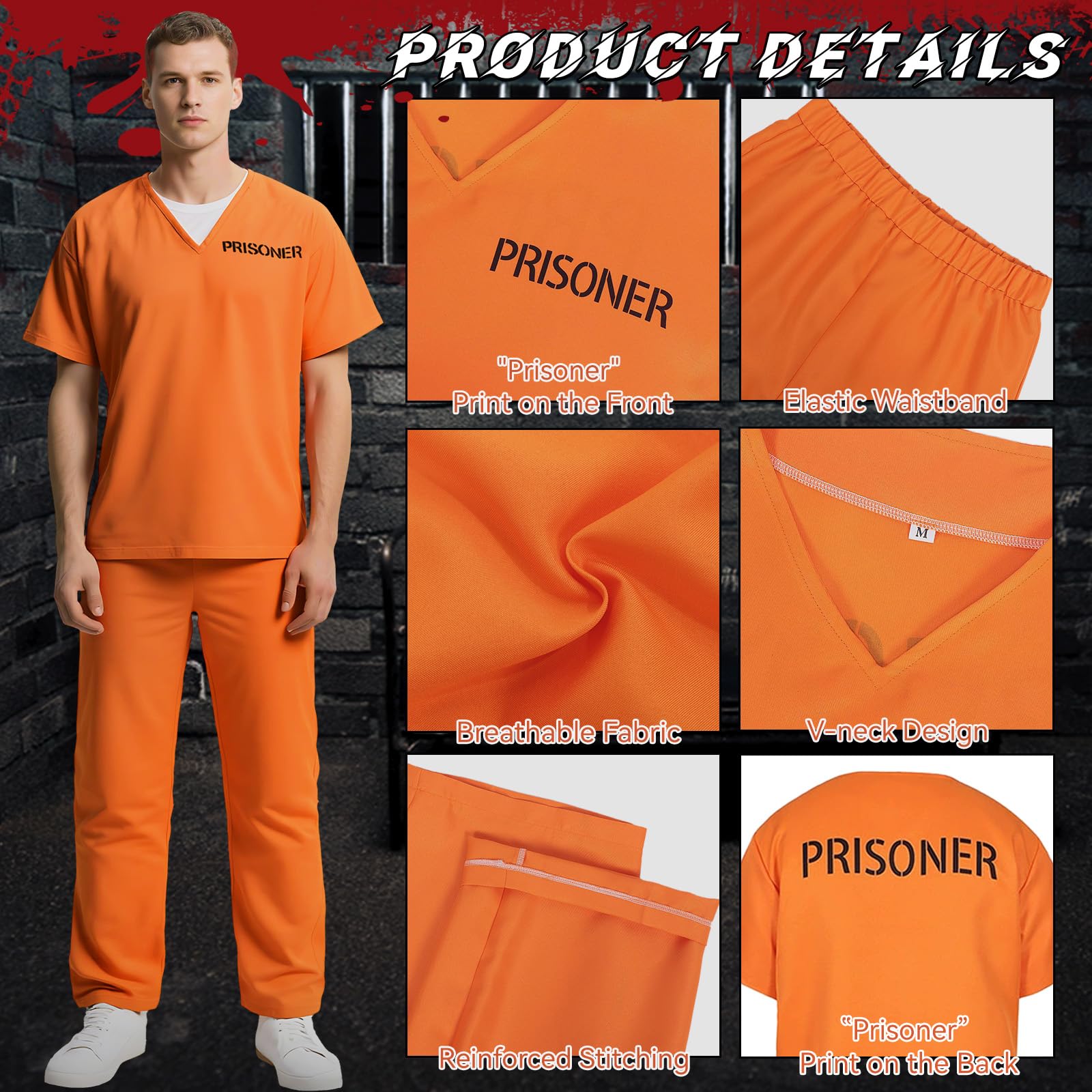 Occasion: This orange inmate costume suitable for halloween, prisoner costume, inmate costume, jail costume, criminal costume, party, birthday, theme party, school play, performance. This prisoner costume jumpsuit for adult men women is a classic criminal style that's ready for fun