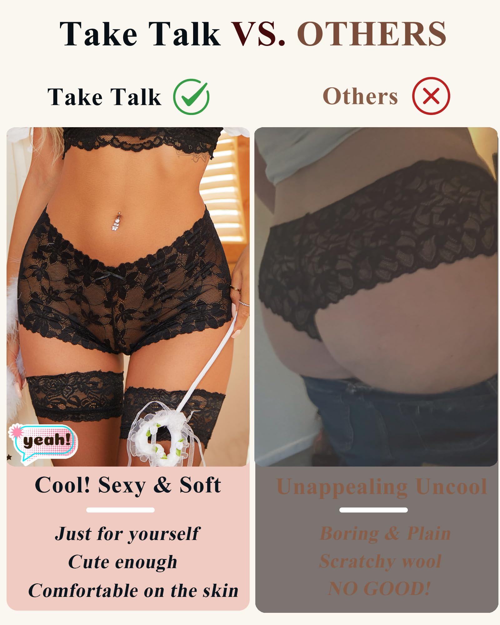5-PACK SEXY WOMEN'S LACE CHEEKY PANTIES UNDERWEAR: Sculpt & Seduce with Confidence! Lace Allure, Perfect Fit: Crafted with ultra-soft stretch lace (72% Polyamide, 18% Elastane, 10% Polyester), our V-waist & High Waist design hugs your curves and enhances your silhouette—offering a cheeky yet comfortable coverage that moves with you.