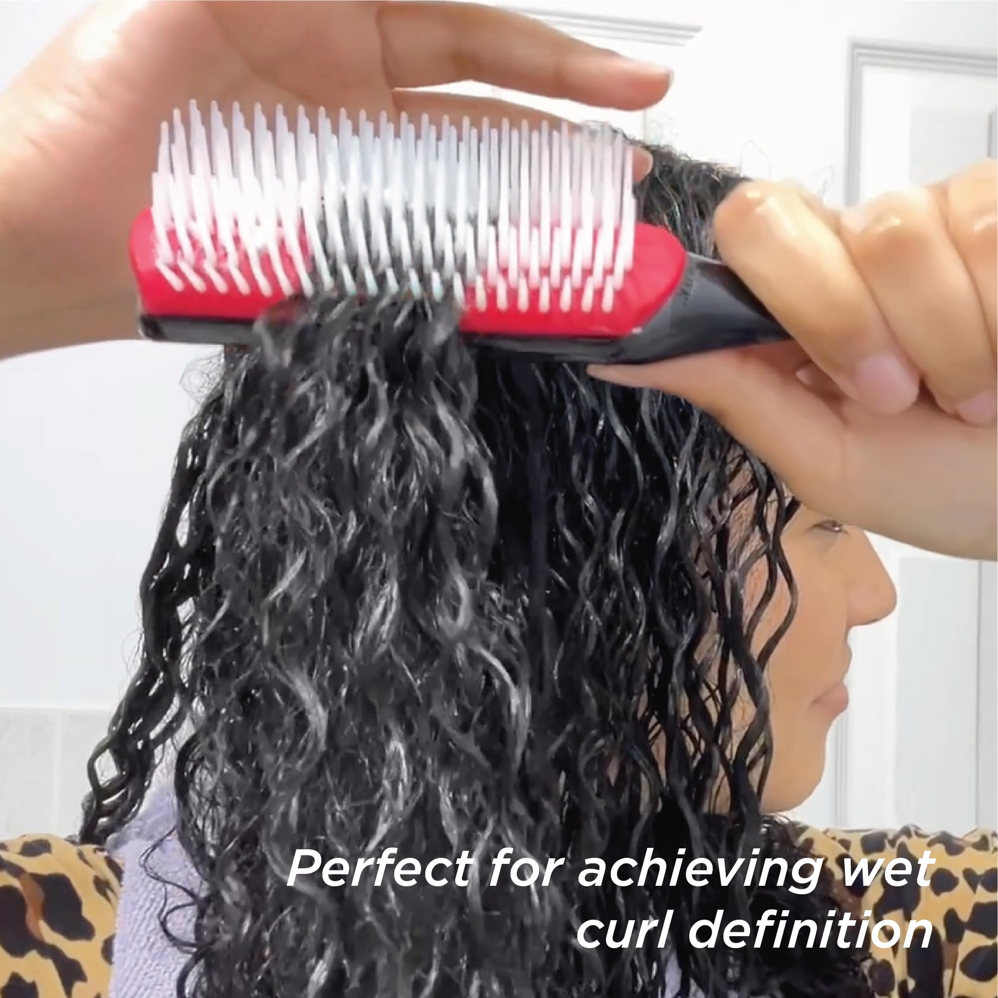 Best Hair Brush for Styling Naturally Curly Hair and Creating Ringlets. The hair brush has 7 Rows of sculpted round-ended nylon pins gives softer, denser, increased movement and defines curls in wet hair.
