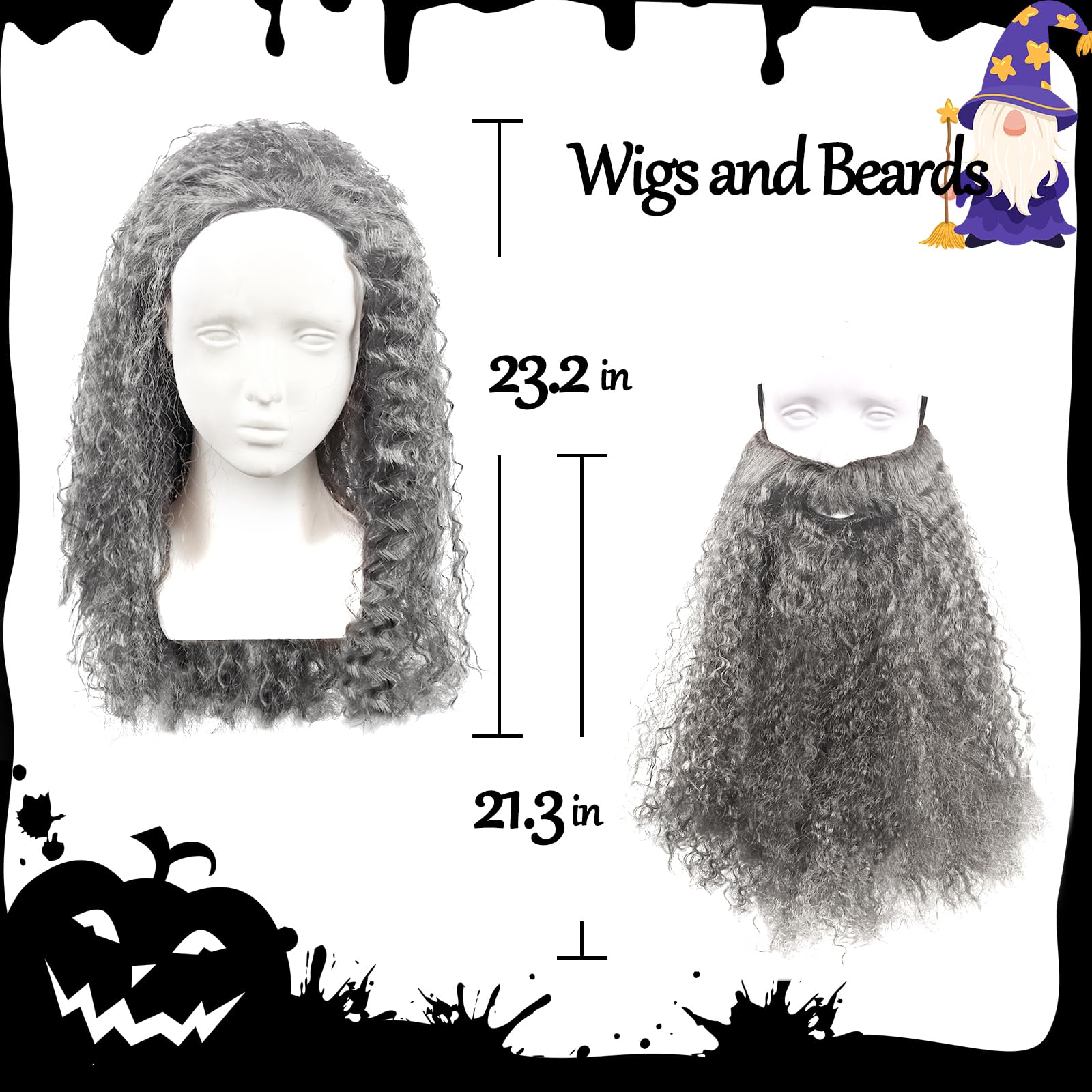 COMPLETE YOUR WIZARD COSTUME: Enhance your wizard ensemble with our premium wig and beard set. Perfect for Halloween or costume parties, our set adds the finishing touch to your look.