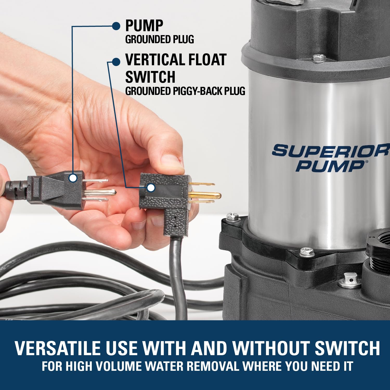 Includes: Vertical float switch, 1-1/2 inch NPT discharge adapter, 10-foot power cord with piggy back plug