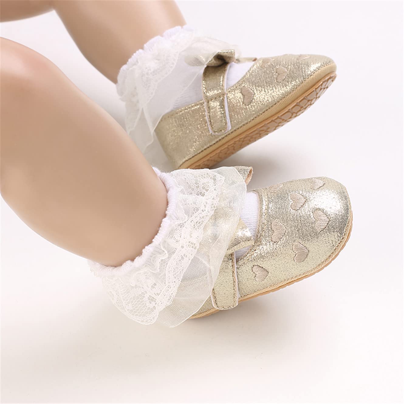 SAFE MATERIAL - Our baby girl shoes are super soft & light weight, and Non-Slip bottoms allow your baby to maneuver safely.