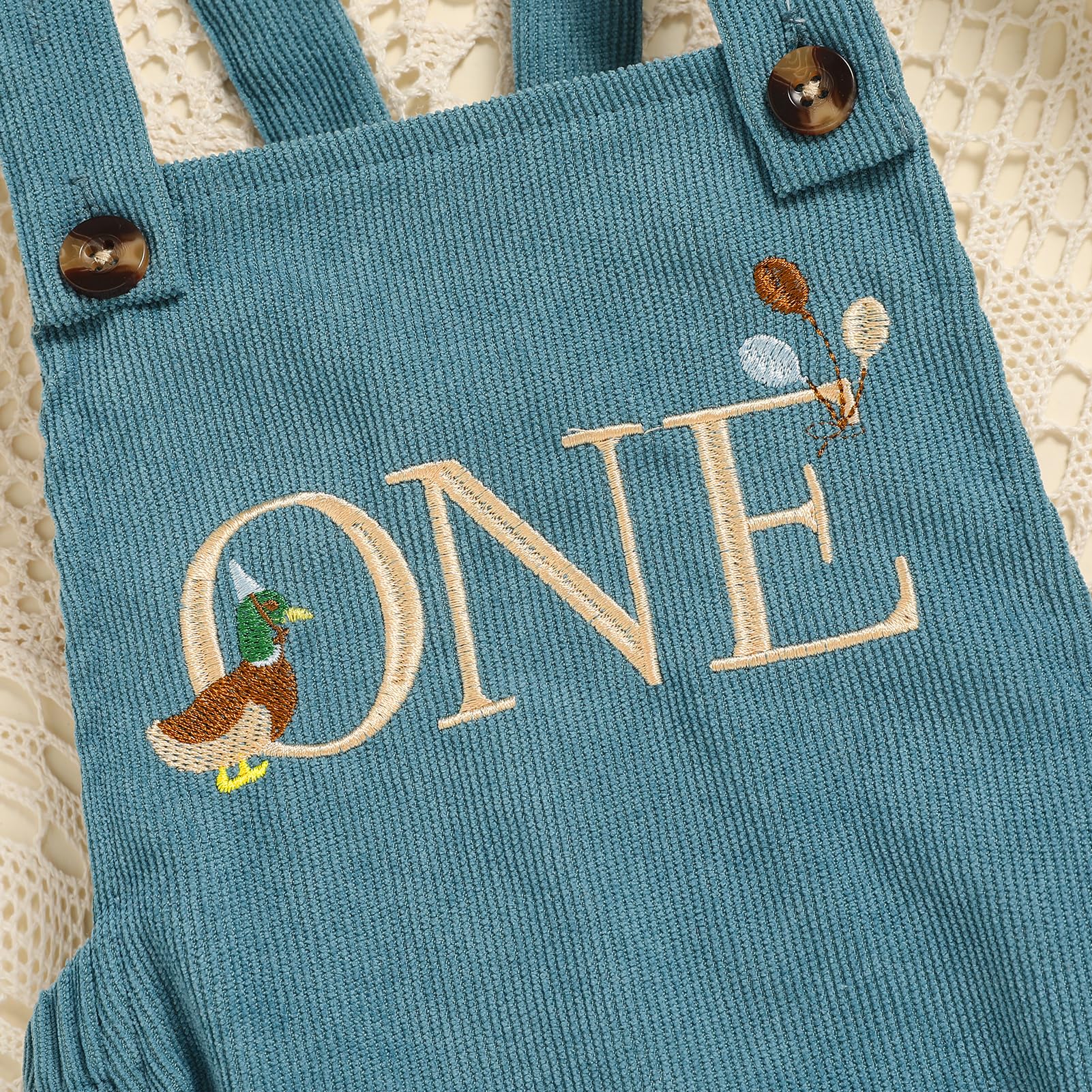 【Chic and Adorable Design】Solid color summer jumpsuit, the middle of the clothes saying "1 birthday".Covered elastic on waist of the bottoms for comfort and stretchy.