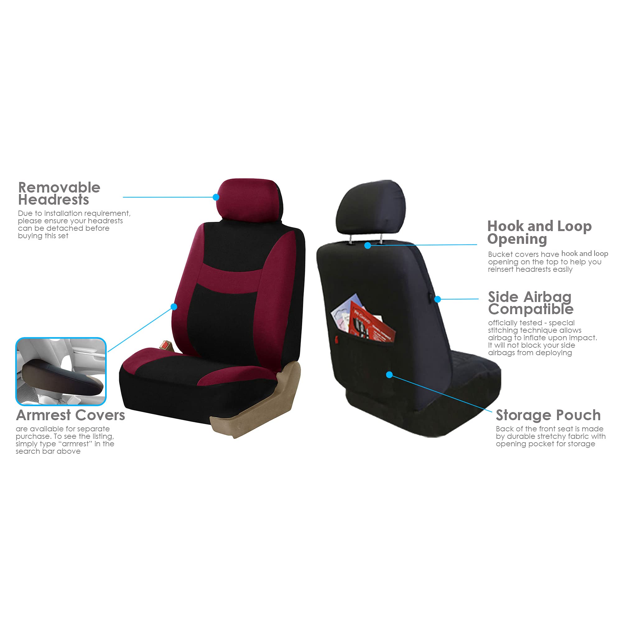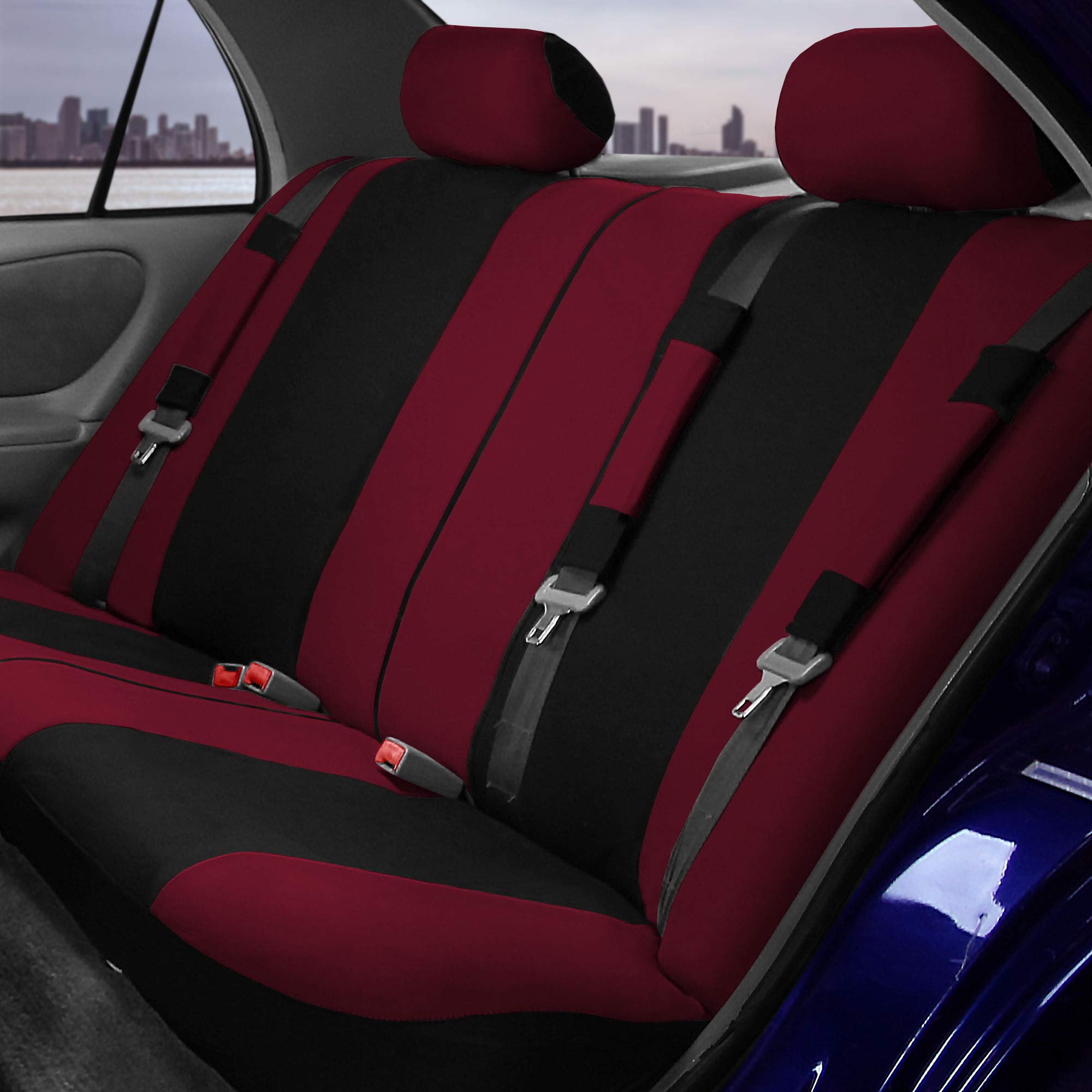 DURABLE AUTOMOTIVE SEAT COVERS IN 12 COLORS: Made from strong washable cloth, these automotive seat covers protect against spills, dirt, and pet hair while enhancing comfort. Available in 12 color combinations such as black, grey, red, beige, blue, purple, and more. Great for drivers searching black seat covers for cars, SUV seat covers full set, or stylish interior covers.