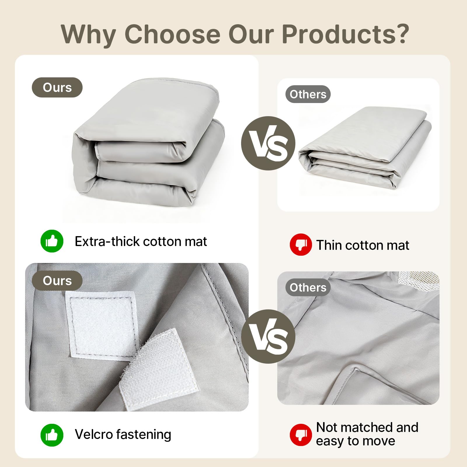 【High-Quality Accessories】The playpen for babies and toddlers comes with a thick, non-slip, soft mat that fits the base perfectly, effectively preventing your baby from falls and bumps. It also includes two additional hanging loops that can be attached to the foldable playpen to assist your baby in practicing standing. Constructed from high-quality, 300D Oxford fabric. The fabric of this baby playpen is not only durable and easy to clean but also tear-resistant, ensuring long-lasting use