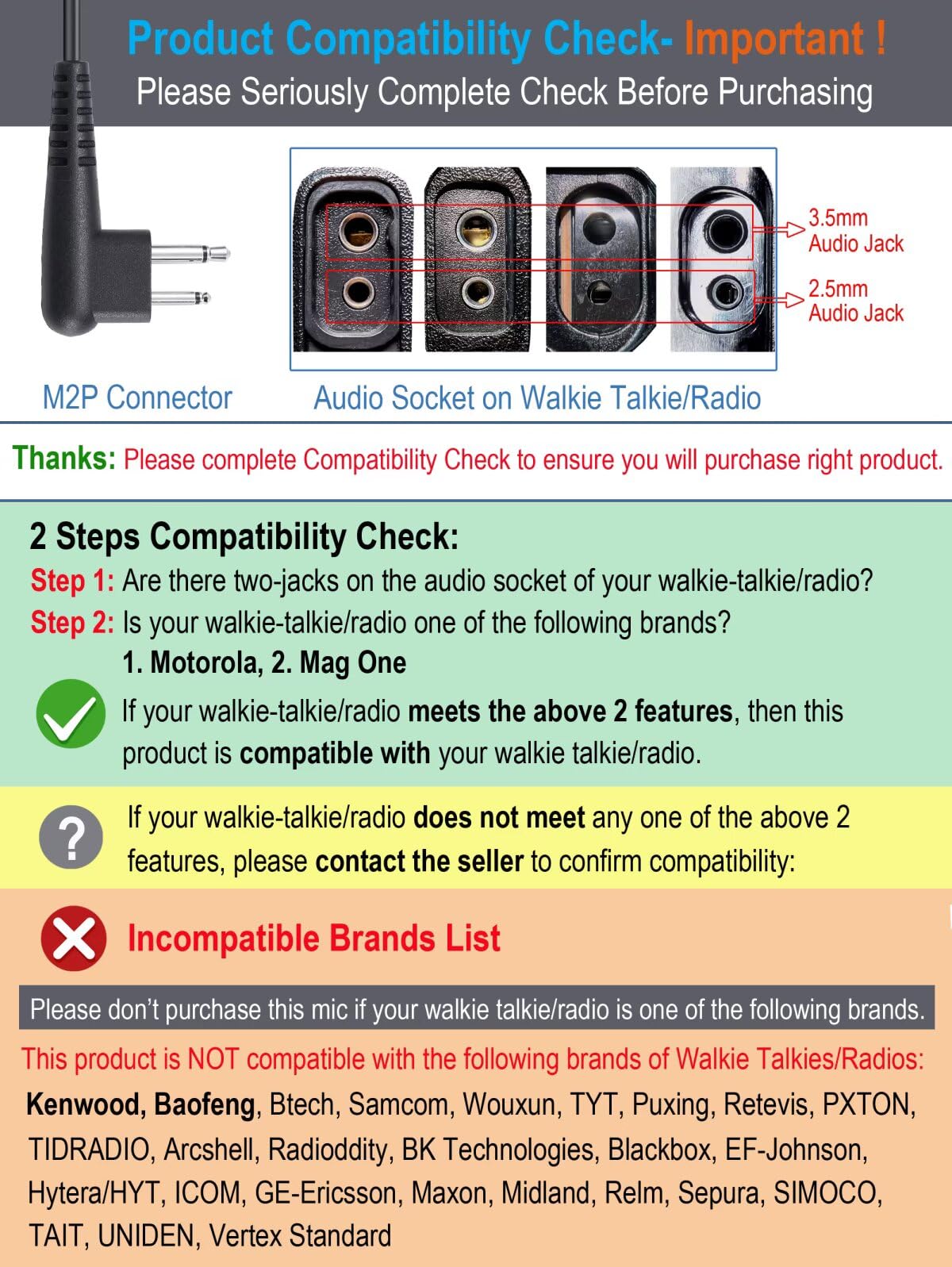 IMPORTANT NOTE: Please check Product Compatibility according to the second product image before purchasing; Compatible for Motorola CP BPR CLS RDX RM series; Including CP100D CP185 CP200 CP200D BPR20 BRP40 BPR40D CLS1401 CLS1110 RDU2020 RDU2080D RDV2020 RDV2080D RDU4100 RDU4103 RDU4160D RDU4163D RMU2040 RMU2043 RMM2050 RMU2080 RMU2080D RMV2080 PR400 and more; This is not Intrinsically Safe mic; This is not water-proof mic (IP 54 only); This is not high temperature mic; 18 Month Warranty.