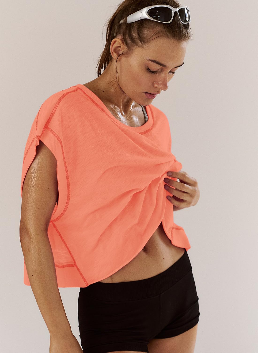Features: Slight crop, shorter sides, wide neckline, open-cut back and ribbed wrist detail, the open back tops for women is fashionable and sexy, which increases the breathability, effectively dissipates body heat, and keeps cool and comfortable