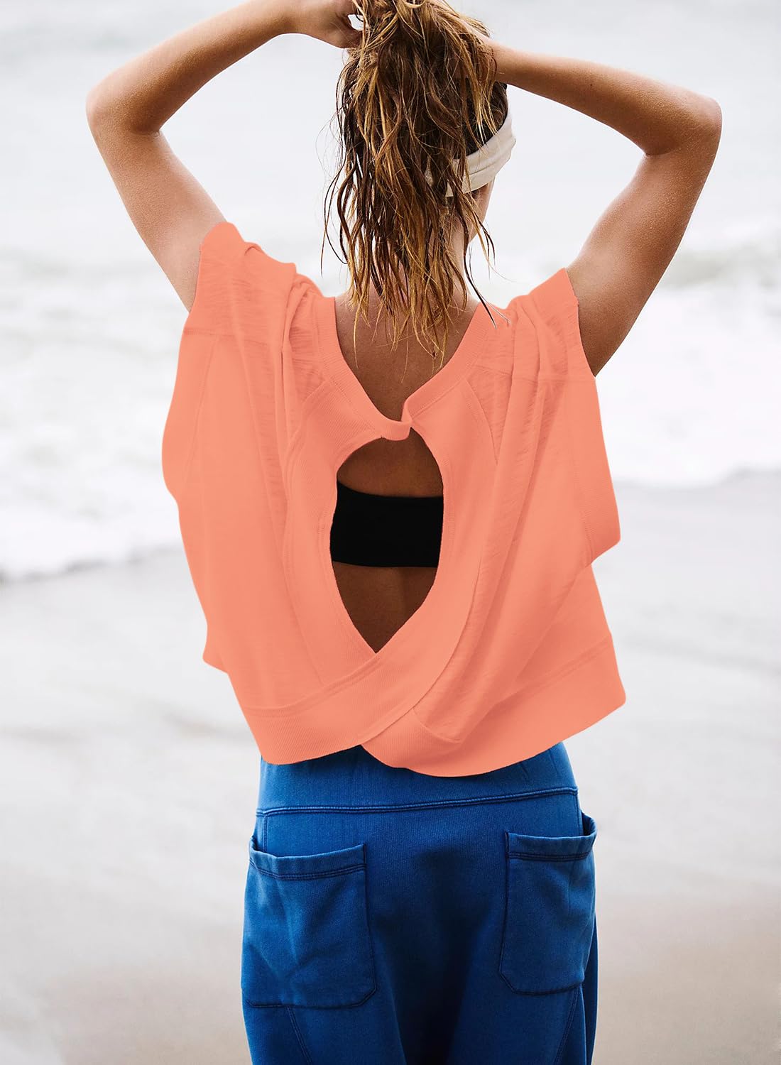 Match: Pair this open back workout top with casual pants, joggers, or shorts, and complete the look with sneakers or casual shoes. Layer it with a tank top, crop top, or vest for a personalized touch
