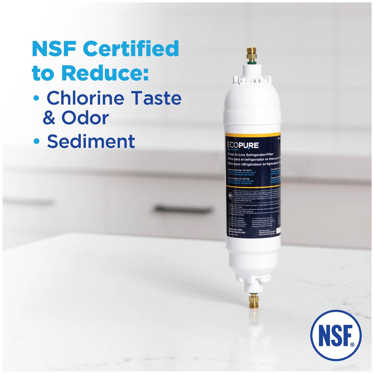 Fresher Water & Ice: Certified to NSF/ANSI Standard 42, this filter reduces chlorine taste, odor, and sediment for crisp, great-tasting waterβso your family can stay refreshed wherever you are