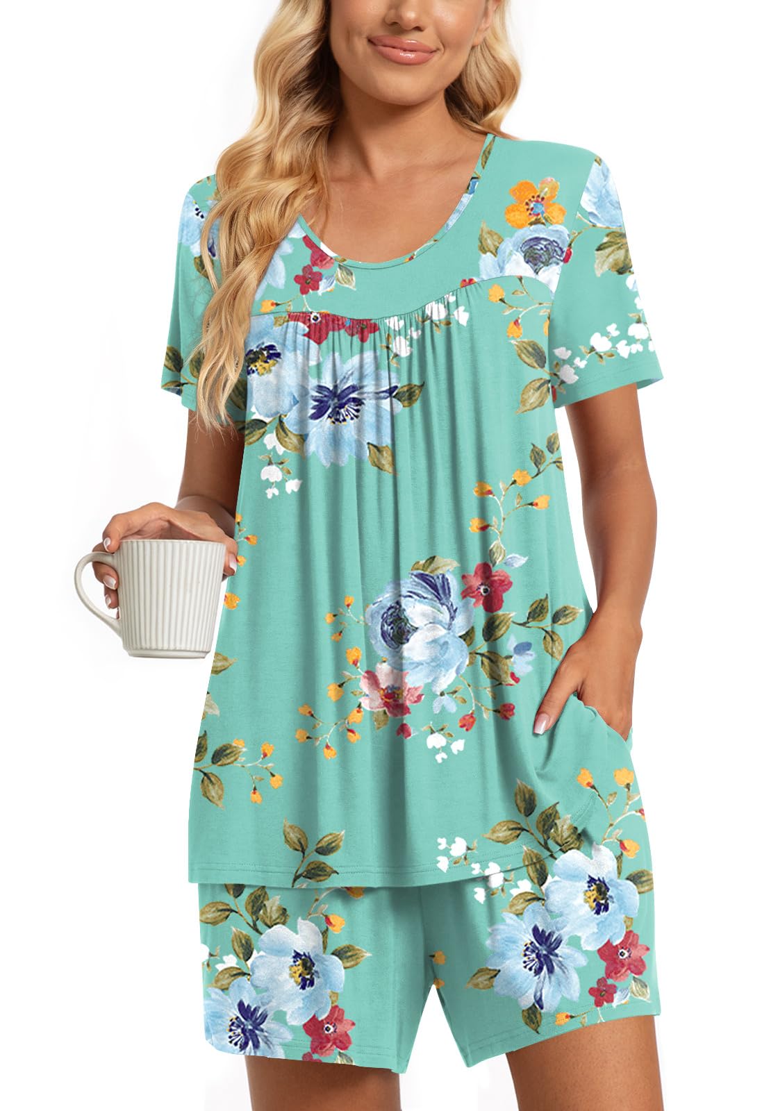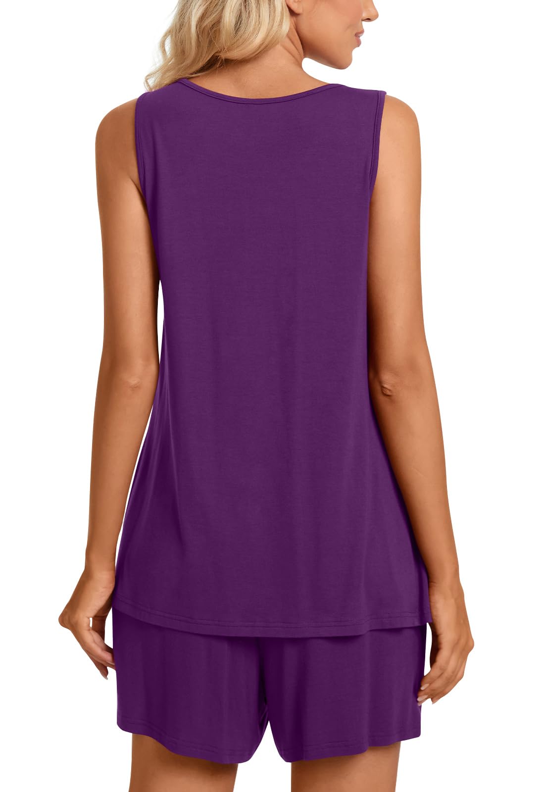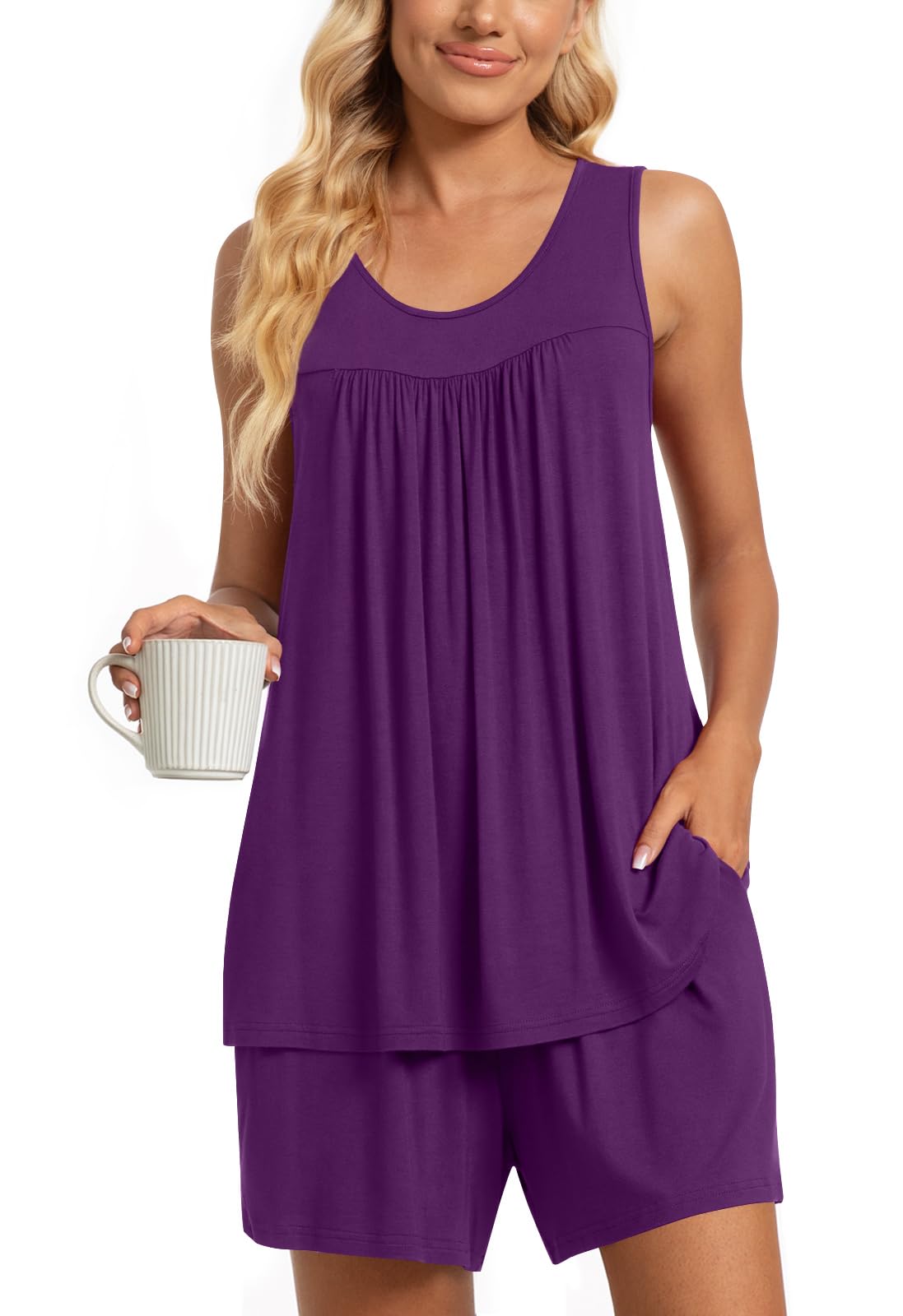 Fashion-Simple Design: Cute two piece outfits, sleeveless tops, soft nightwear, scoop neck and front pleated detailed design. Elastic waistband shorts, casual loose comfy, graceful and easeful