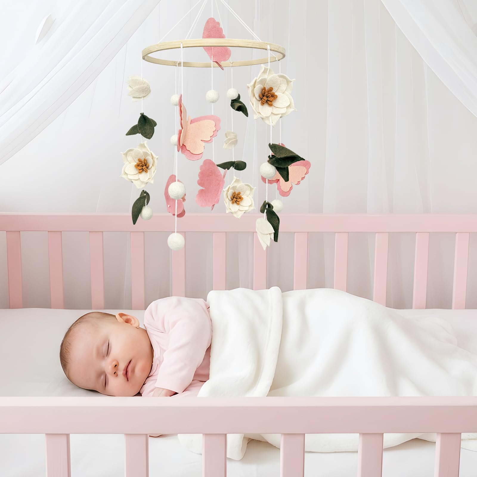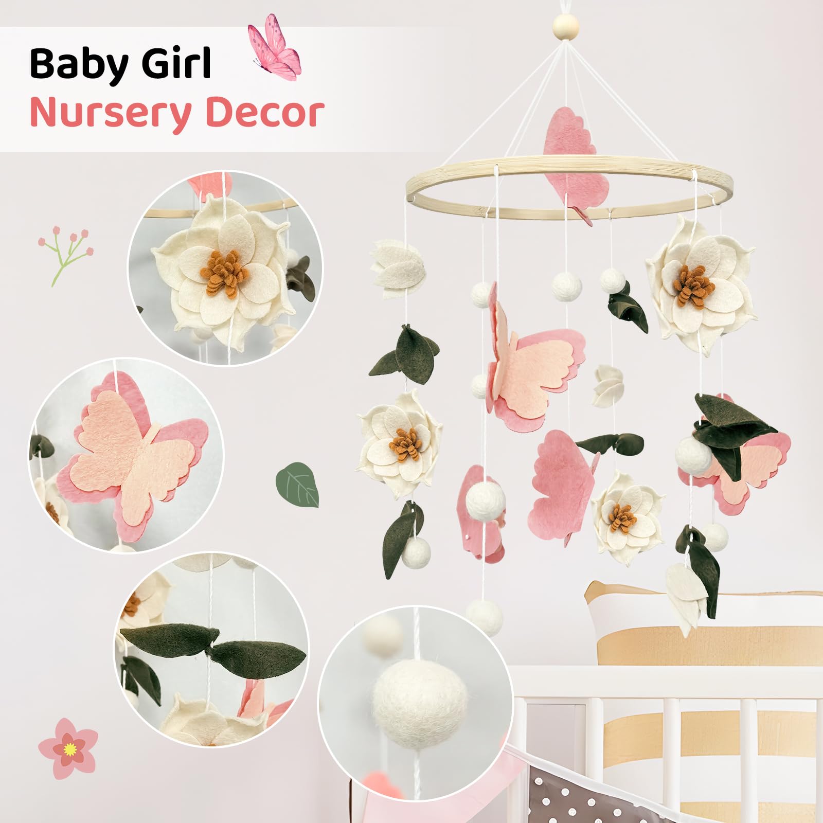 Unforgettable Floral Gift: Presented in a gift box, this handmade flowers and butterflies baby crib mobile is the ultimate choice for baby showers, gender reveals, or newborn celebrations. Its unique floral craftsmanship and heirloom quality will delight parents seeking meaningful, photo-worthy nursery decor that tells a story of blooming beauty.