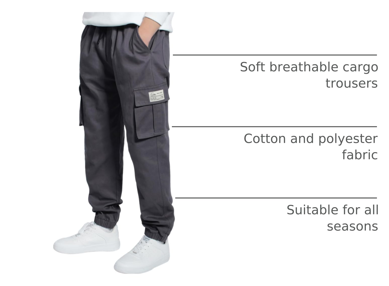 Soft breathable cargo trousers snug fit and cozy, suitable for all seasons.