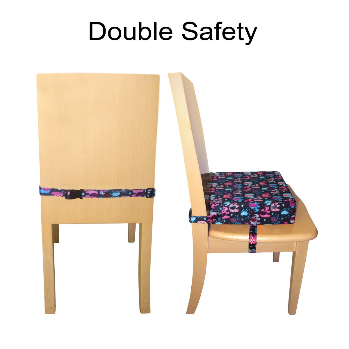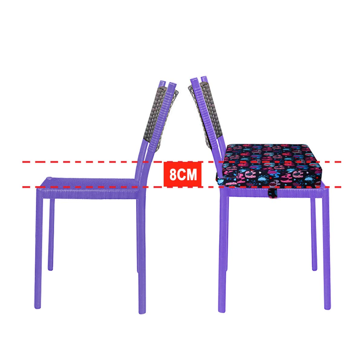 Dimensions: 12.6"L x 3.1"H x 12.6"W, fit most of dining chairs. It can be used for toddler children old who can sit unaided at a table to enjoy the meal with family together. Also can used for children writing, drawing and play toys.
