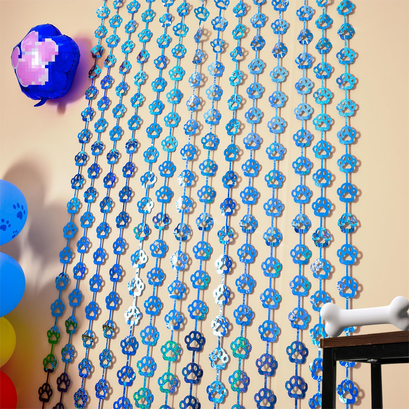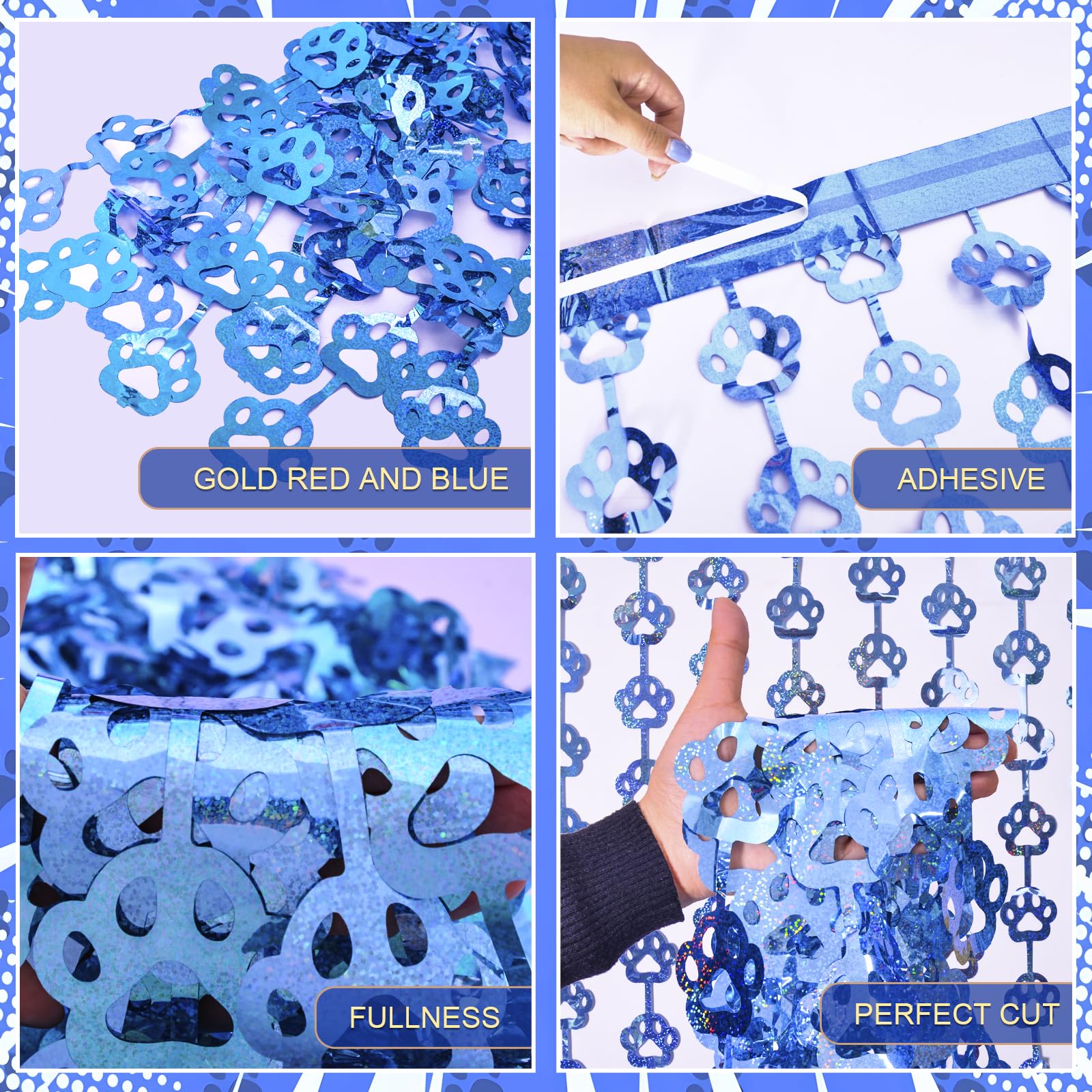 🩵 DOG BIRTHDAY PARTY SUPPLIES: Our unique blue dog paw tinsel foil fringe curtains are the perfect photo backdrop for every party decor for Pet. You will be amazed at the colorful atmosphere and view they create.