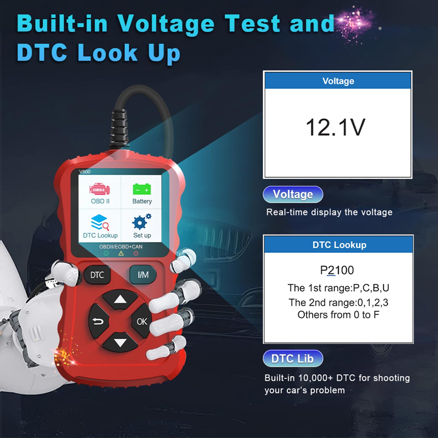 Smart Upgrade: Unlike ordinary OBD2 scanners, this upgraded car accessories includes a real-time voltage test function, allowing you to monitor your vehicle's electrical system and prevent potential problems. The built-in power indicator light ensures a stable connection and keeps you informed of the scanner's operating status. The advanced enhanced chip greatly improves data processing capabilities, handling faults in a smoother way, reducing waiting time and improving the efficiency of repairs and inspections. These intelligent enhancements make troubleshooting more precise and efficient, giving you better control over the health of your vehicle.
