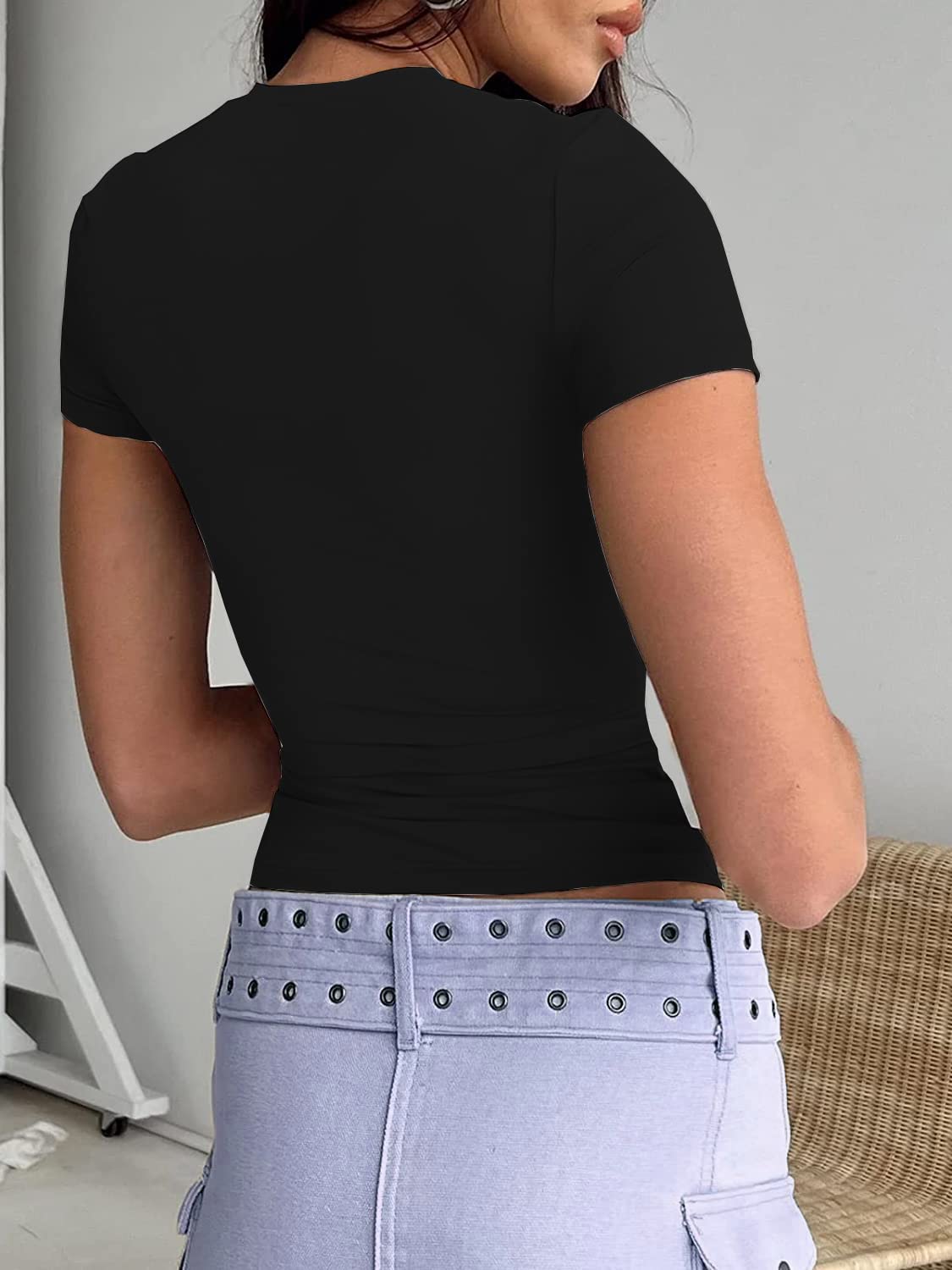 Casual Womens Short Sleeve Tops: This basic crop tops for women sexy casual, short sleeve, crewneck, basic womens going out tops in summer and fall, solid colors, include royal blue, pink, white and black, cute and trendy, fits wear in different occasion