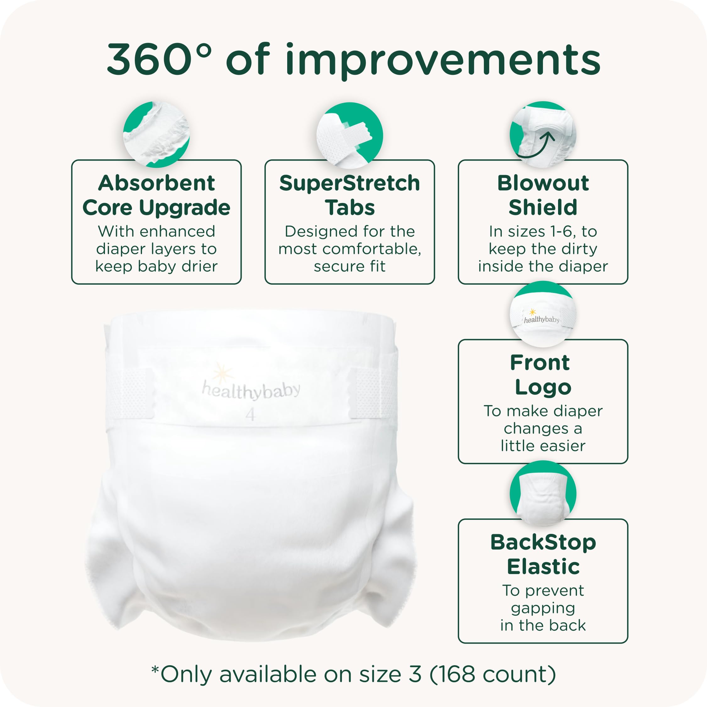 Verified Safe Diapers for Baby: HealthyBaby pioneered the first EWG Verified diaper, made without 3,900+ chemicals and materials linked to potential health harm. Our Diapers feature a 15% organic cotton outer cover and plant-derived materials that cradle delicate skin and keep baby 3x drier.