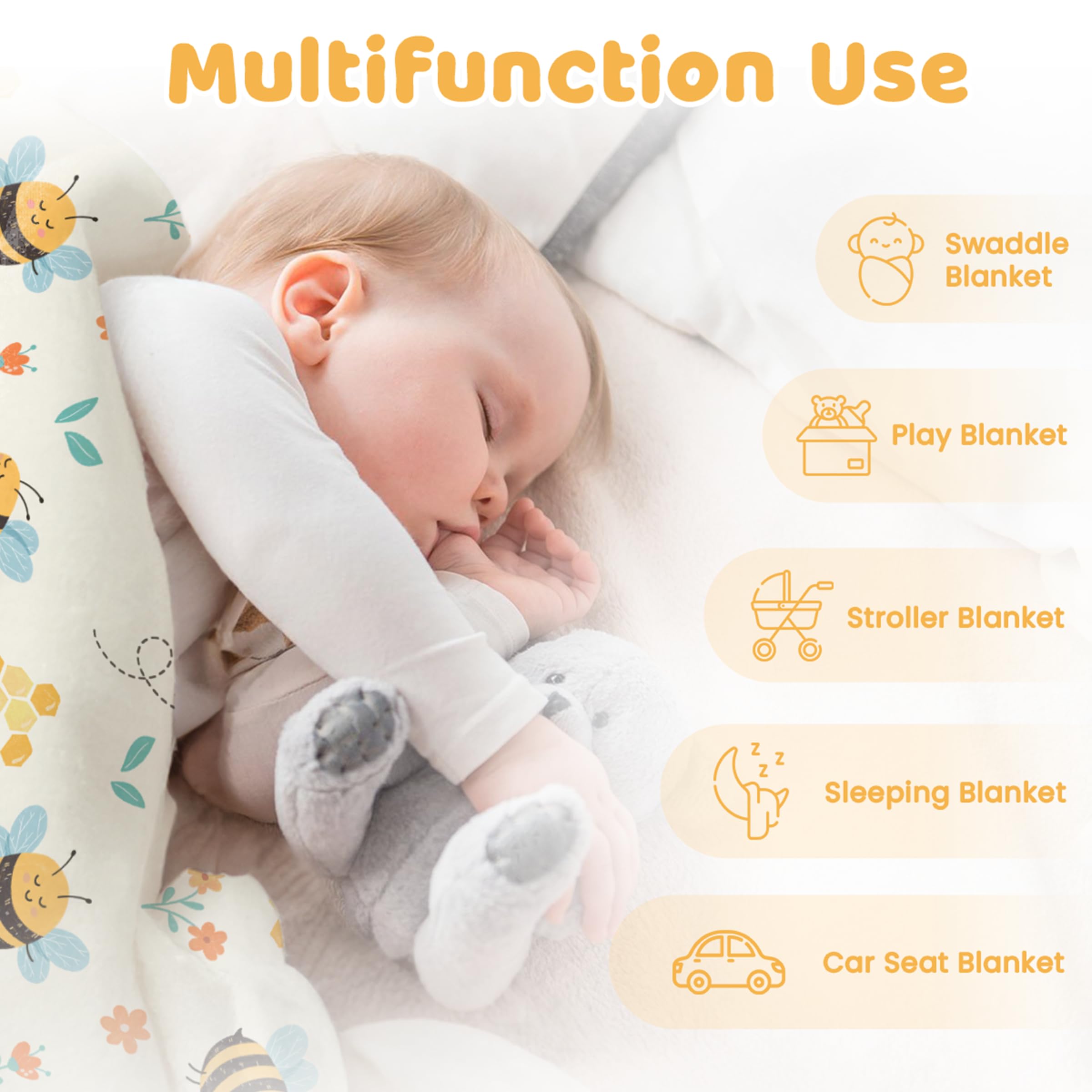 Comfortable material: the baby blanket is light, ensuring your little one stay comfortable all year round; one side features a smooth surface while the other is 3D dotted