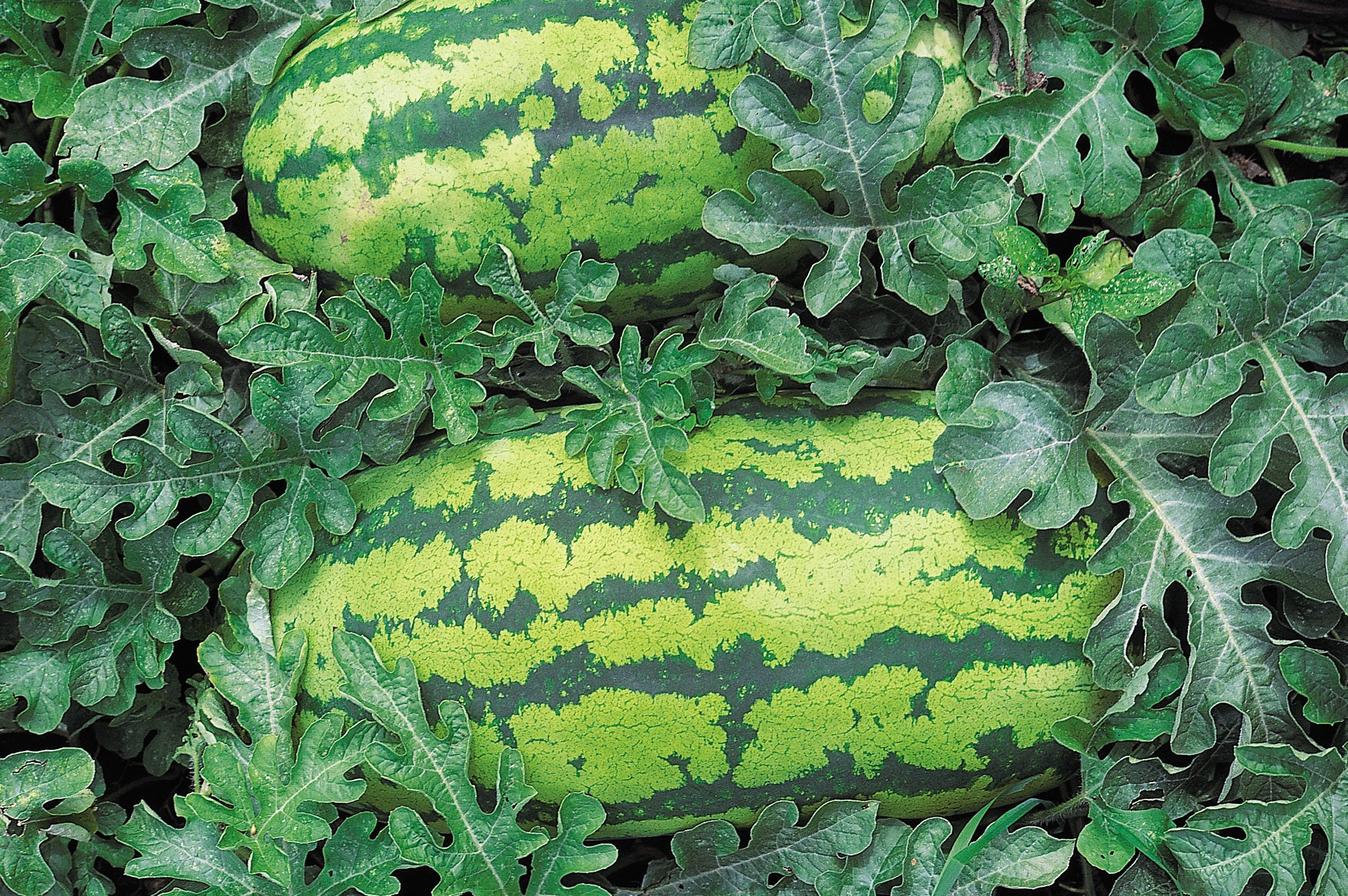 Heirloom. The classic pink flesh Watermelon with pale Green "snakeskin" stripes. Melons grow 2' long and weigh 30 lbs