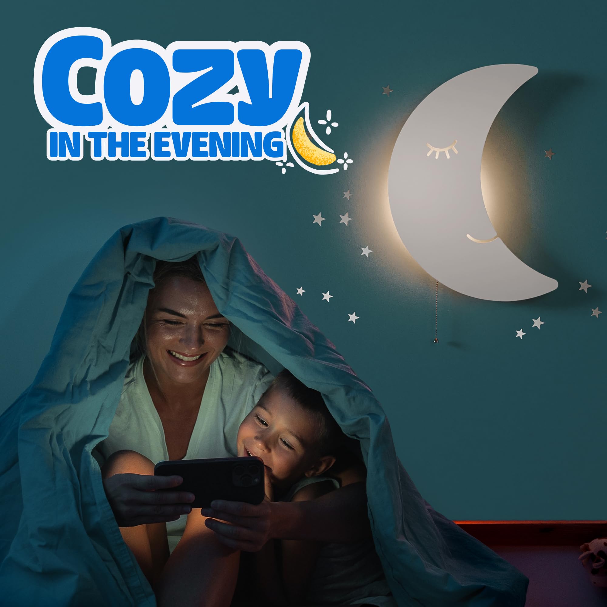 Cute and whimsical design: This Moon baby night light is a floating Moon-shaped wall lamp that adds a touch of magic and charm to any child's room. its adorable design is sure to delight both children and parents.