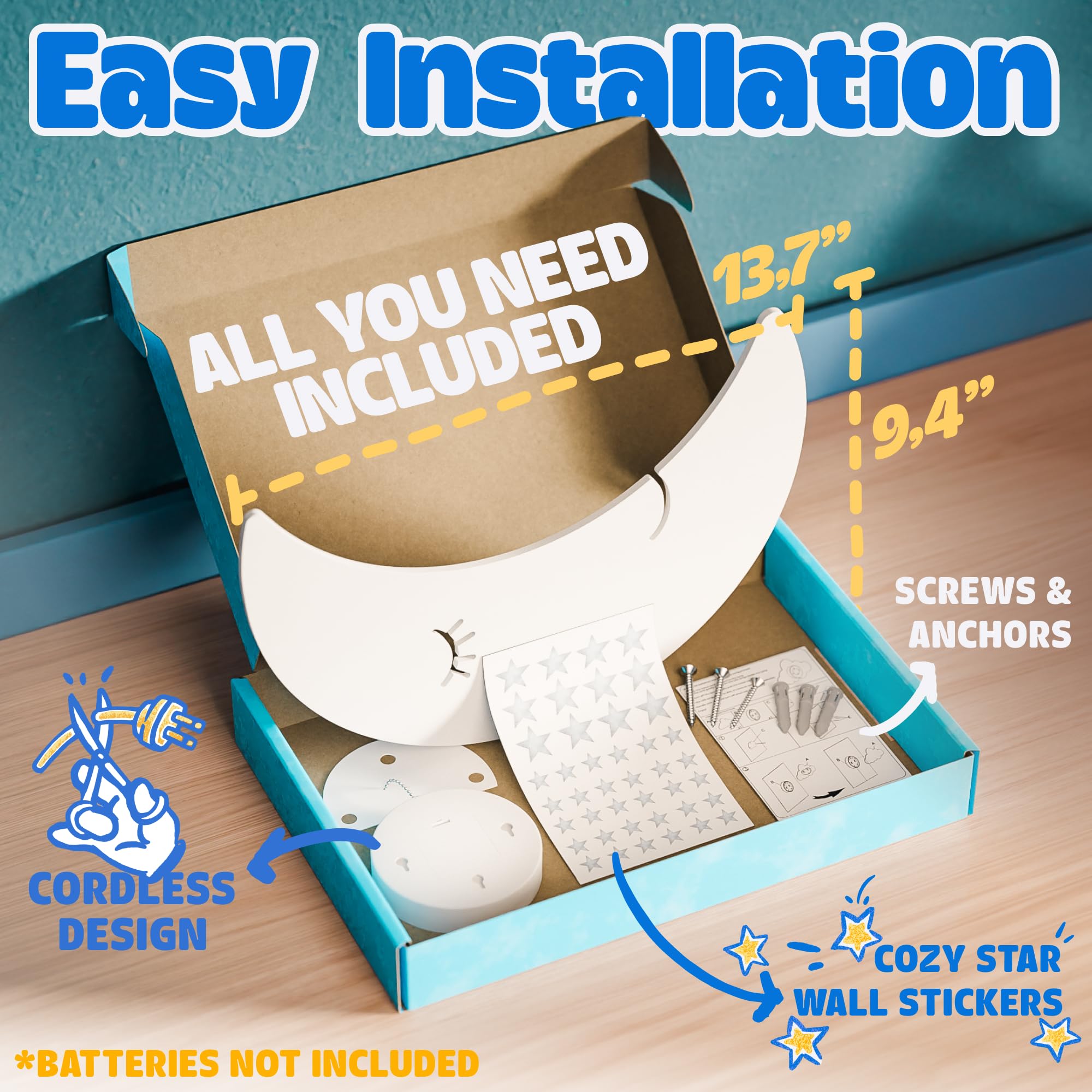 Battery-operated and easy to install: This Baby nightlight is powered by batteries, making it a hassle-free option for parents who want to avoid cords and wires in their child's room. It's also easy to install by screwing a screw into the wall and then hanging the lamp on the screw.