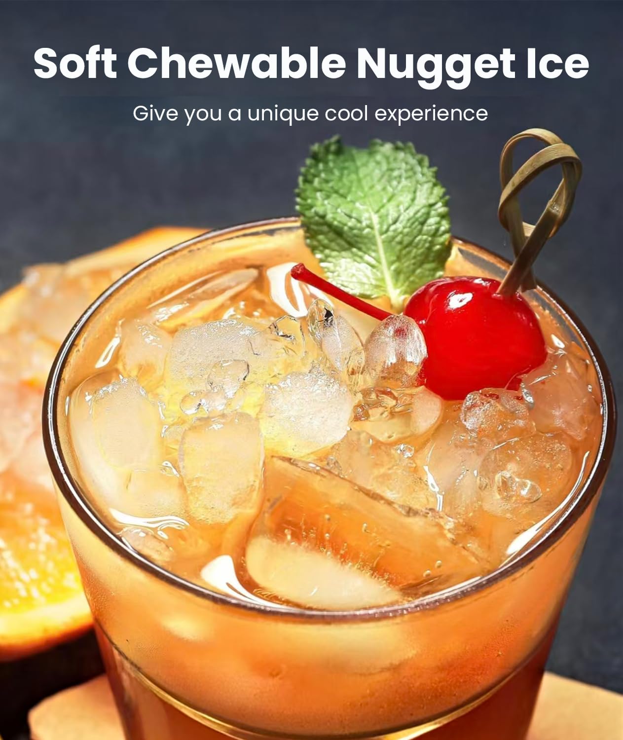 【Innovative Granulated Ice】 The small ice maker features a built-in sharp blade for precise cutting, creating delicate and chewy granulated ice that eliminates the rough texture of traditional hard ice. This ice crystal structure is not only crisper but also perfectly locks in the original flavor of the drink, making it especially suitable for premium spirits like whiskey, ensuring every sip is pure and flawless. Its precisely controlled melting speed is also the perfect guardian of the flavor of chilled beverages.