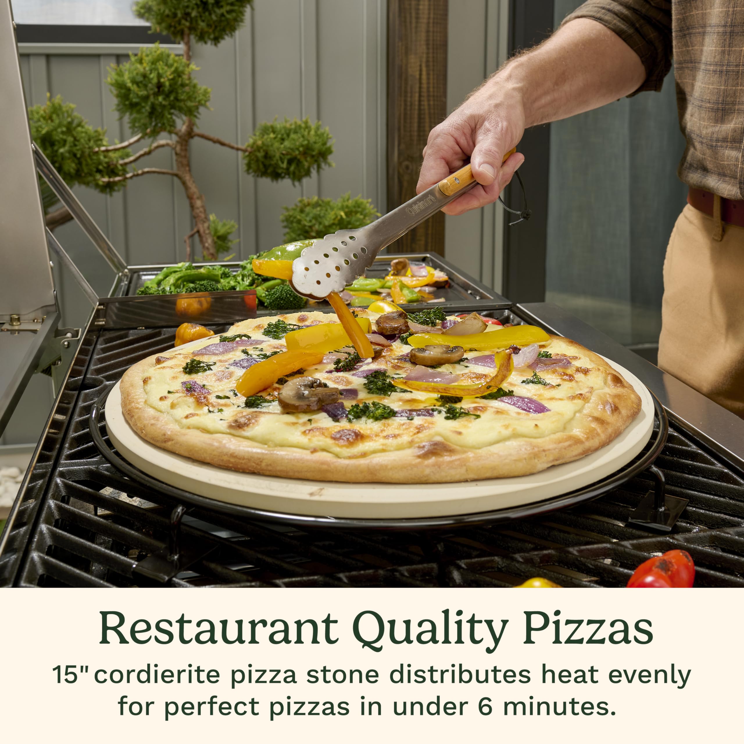 VERSATILE COOKING: Grill, sear, or griddle with 477 sq. in. of grilling space, a 176 sq. in. griddle, and a 15" pizza stone—perfect for anything from burgers to pancakes to pizza.