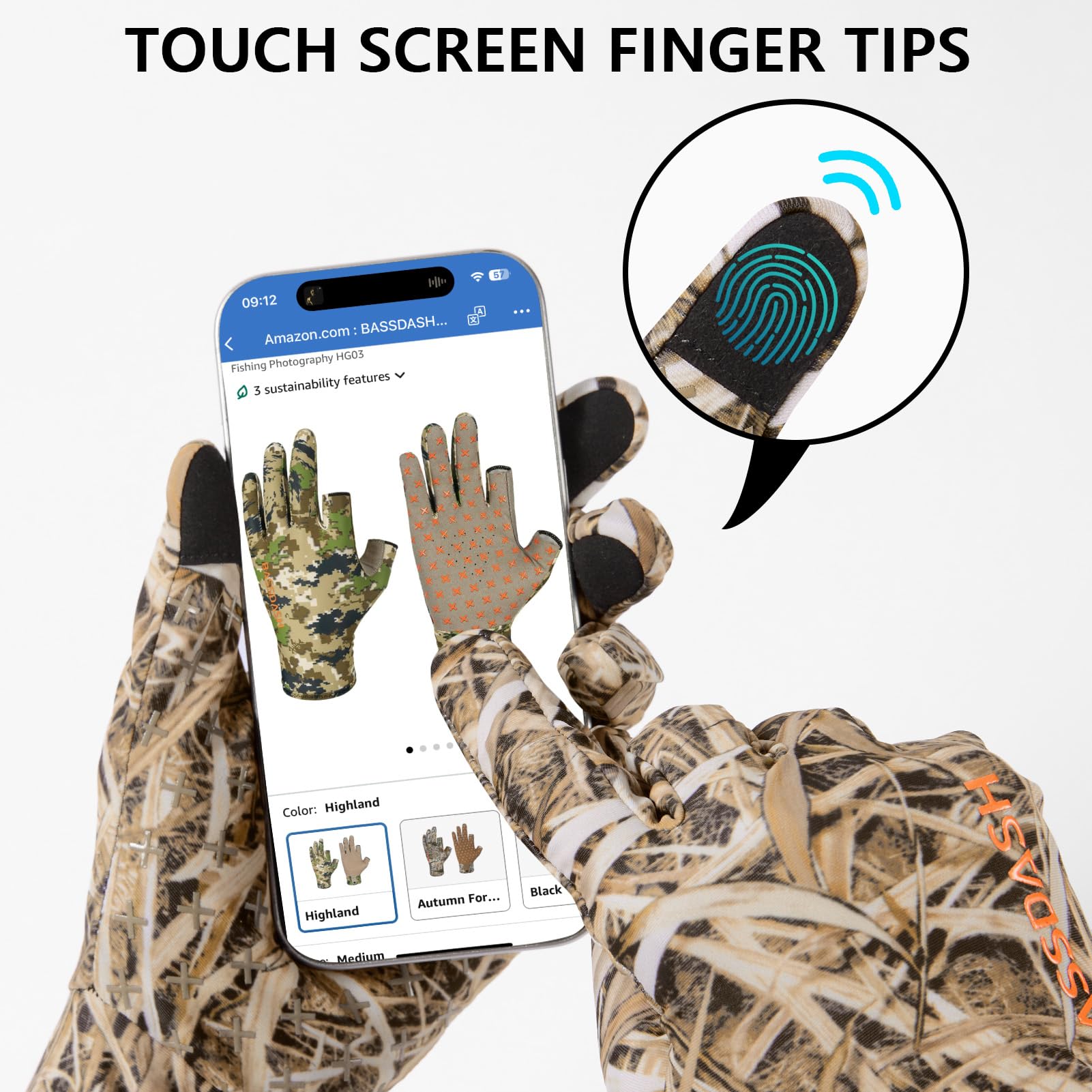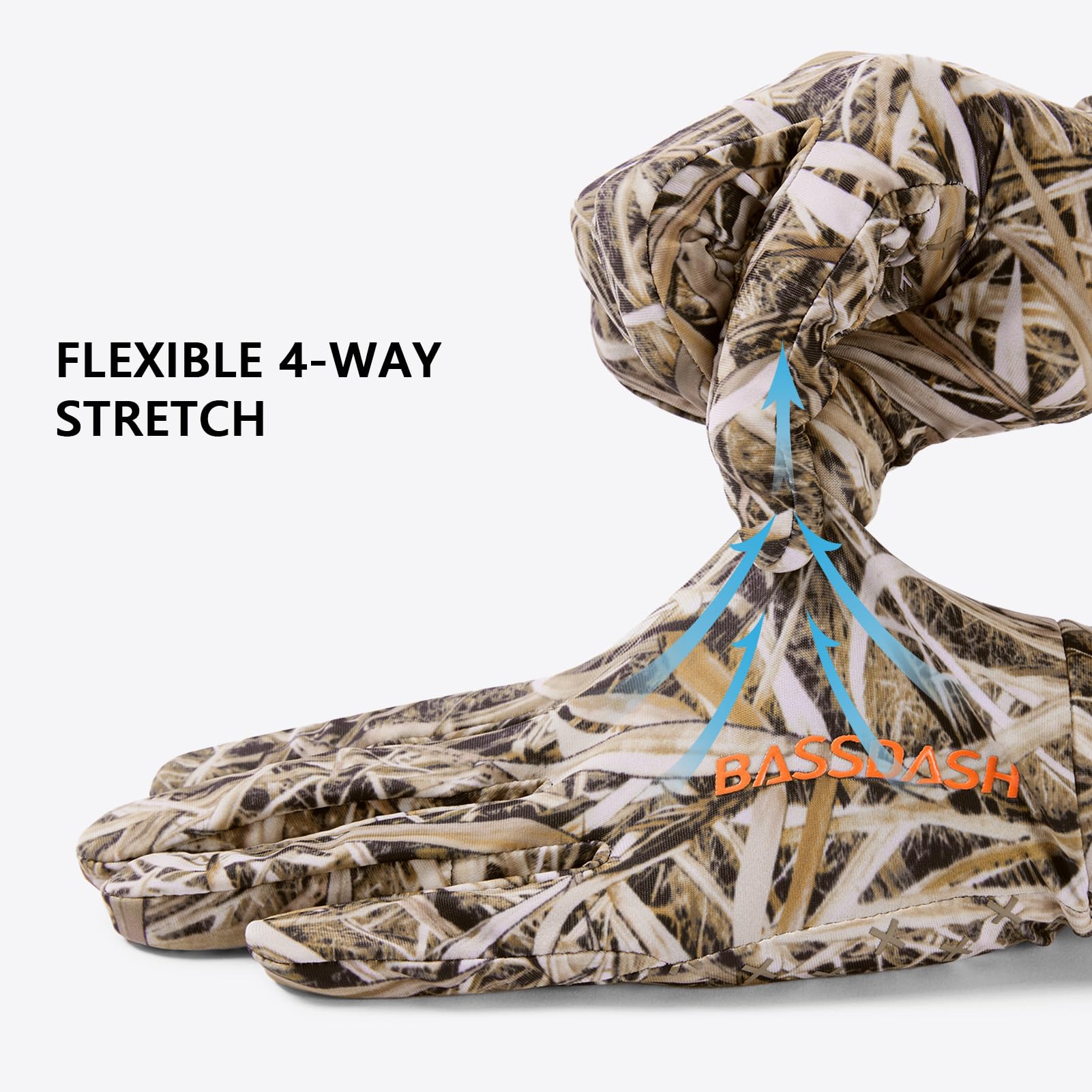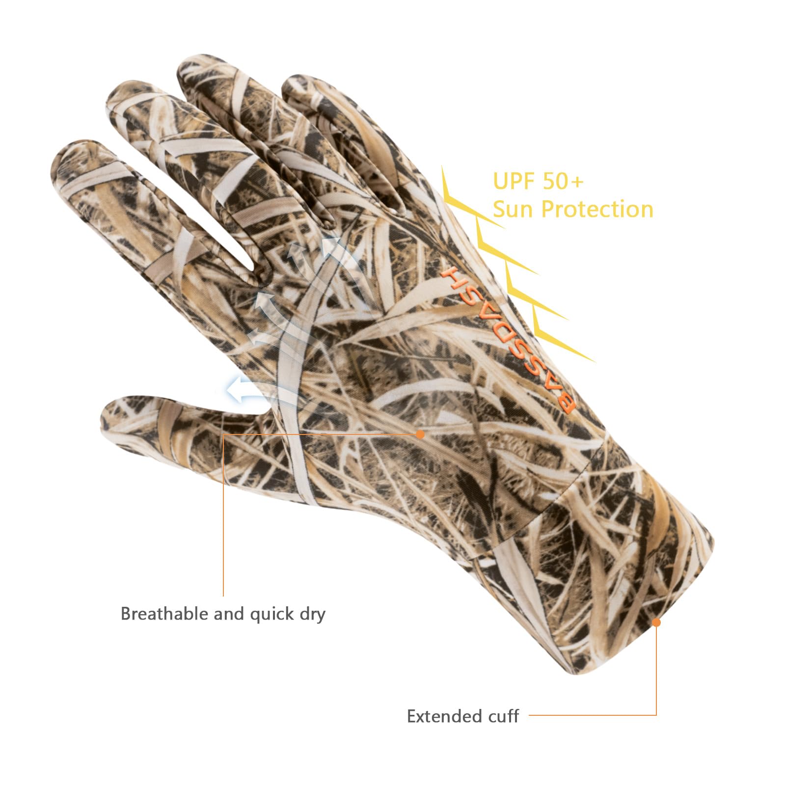 Description BASSDASH Men’s Camo Hunting Gloves UPF 50+ Lightweight Touchscreen Gloves for Warm Weather Fishing Hiking Outdoor Activities HG01M