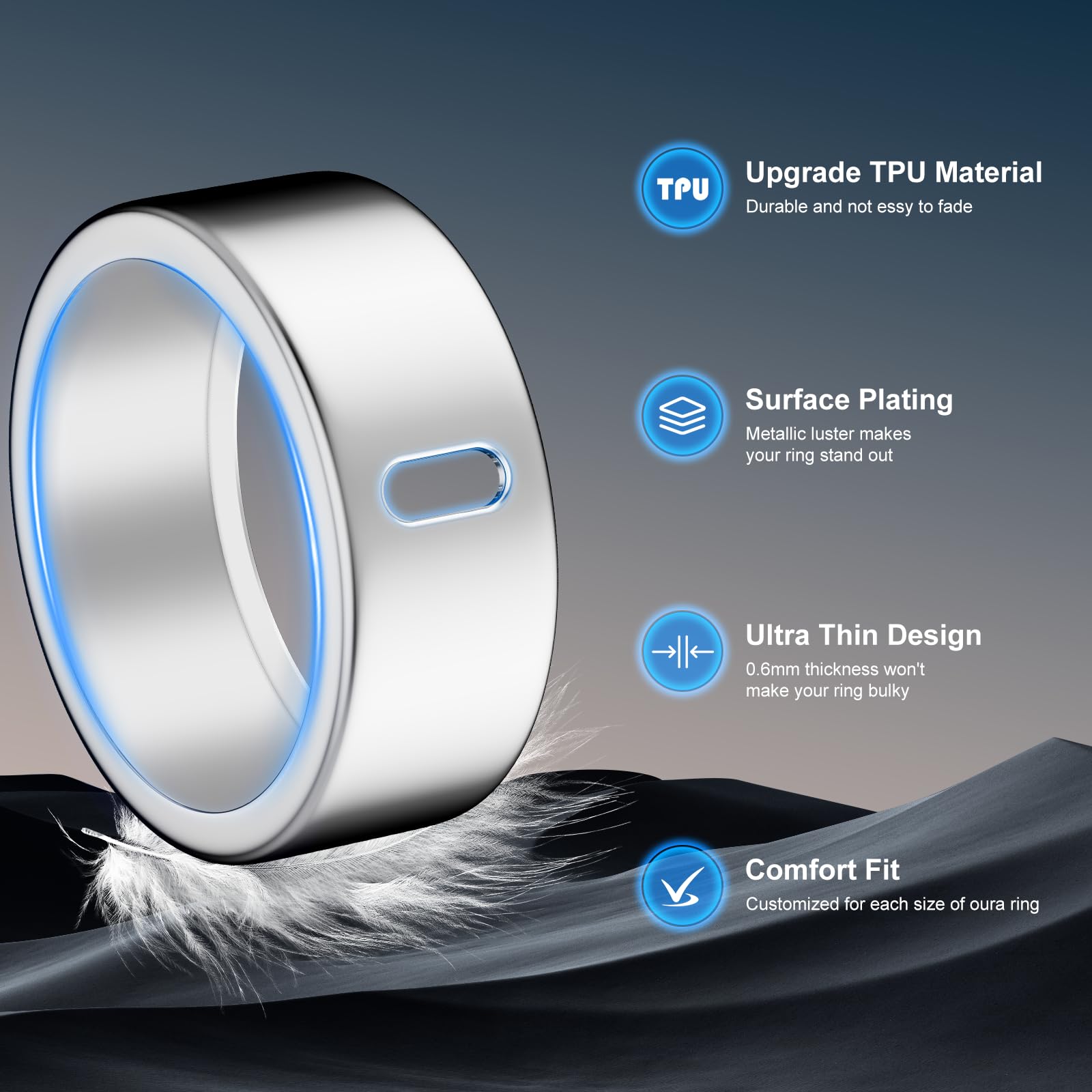 Premium TPU Material: Crafted from udgrade TPU with a premium electroplated coating, our Oura Ring case surpasses standard silicone—resistant to tearing, cracking, and wear for long-term protection. The advanced finish delivers a refined metallic luster, blending rugged strength with sleek sophistication.