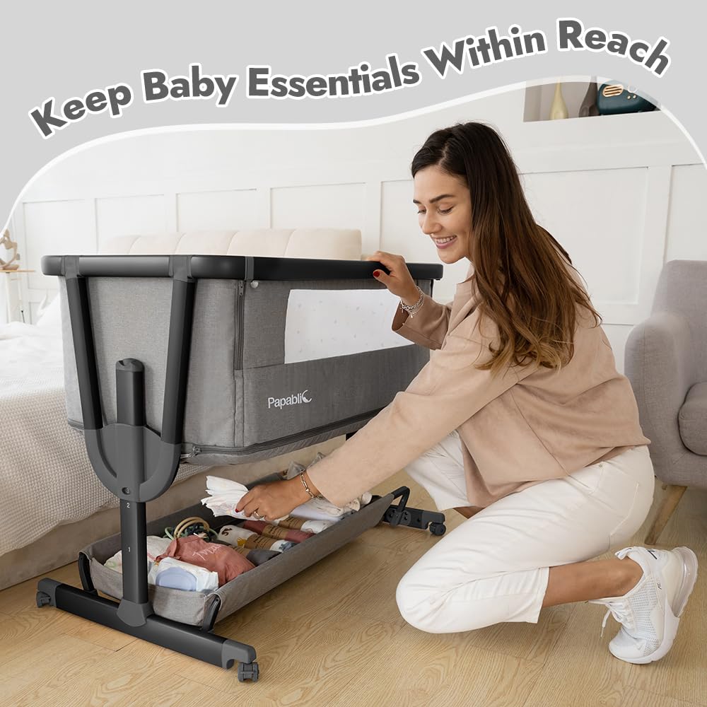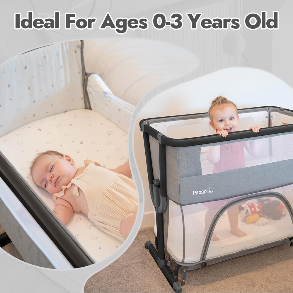 Super 4-in-1 Design: The Papablic baby bassinet easily transforms into a bedside bassinet, standalone bassinet, rocking bassinet - perfect from newborn to toddler (0-3 years). One bassinet, four ways to use it as your baby grows!