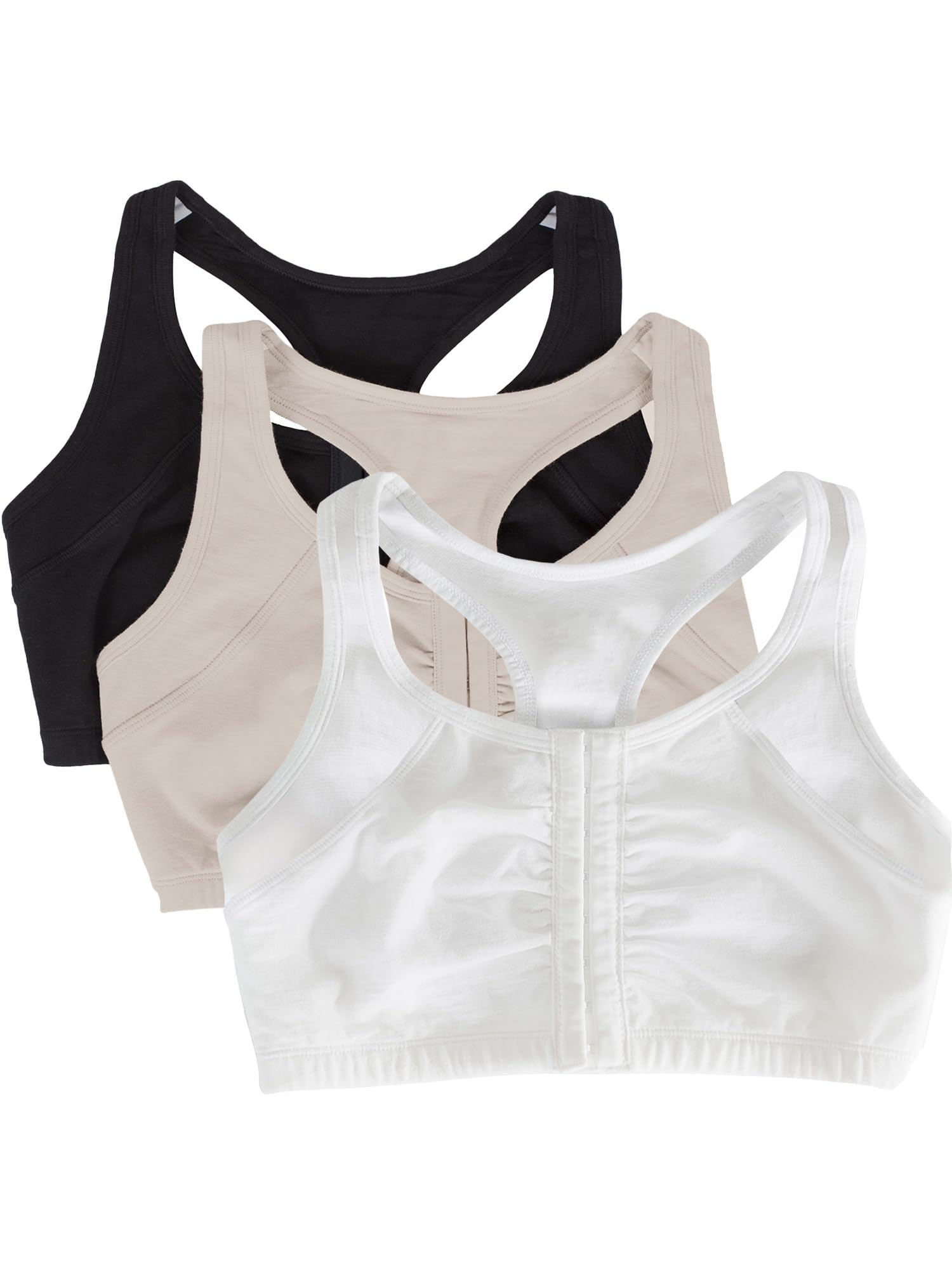 Description Experience all-day comfort and effortless wear with the Fruit of the Loom Women's Front Close Built-Up Sports Bra made from soft, breathable cotton. Designed for ultimate ease, this wire-free bra features a front closure for quick and convenient wear, making it perfect for everyday use. The built-up straps provide additional support while ensuring a comfortable fit that won’t dig into your shoulders. Crafted from high-quality cotton fabric, this sports bra offers a naturally soft feel while helping to keep you cool and dry throughout the day. The wire-free design provides gentle yet reliable support, making it an excellent choice for low-impact activities, lounging, or layering under casual outfits. With a full-coverage fit, this bra delivers secure comfort without compromising on style. Enjoy the perfect combination of comfort, support, and convenience with the Fruit of the Loom Women's Front Close Built-Up Sports Bra—your go-to choice for easy, everyday wear.