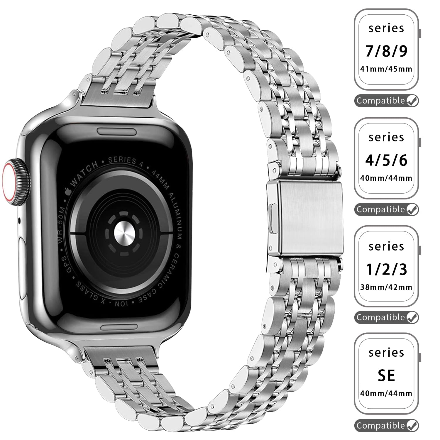 [Compatible model] Apple watch band is compatible with apple watch Series 11/10(42 mm 46mm), Series 9/8/7(41mm 45mm), Series 6/5/4(40mm 44mm), Series 3/2/1(38mm 42mm) and Series SE(40mm 44mm).