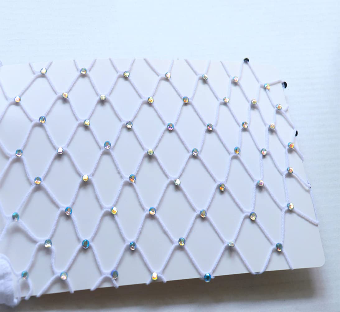 Rhinestones are all over the fishnets and are pretty securely glued on. The subtle pearly shine, absolutely Eye Catcher