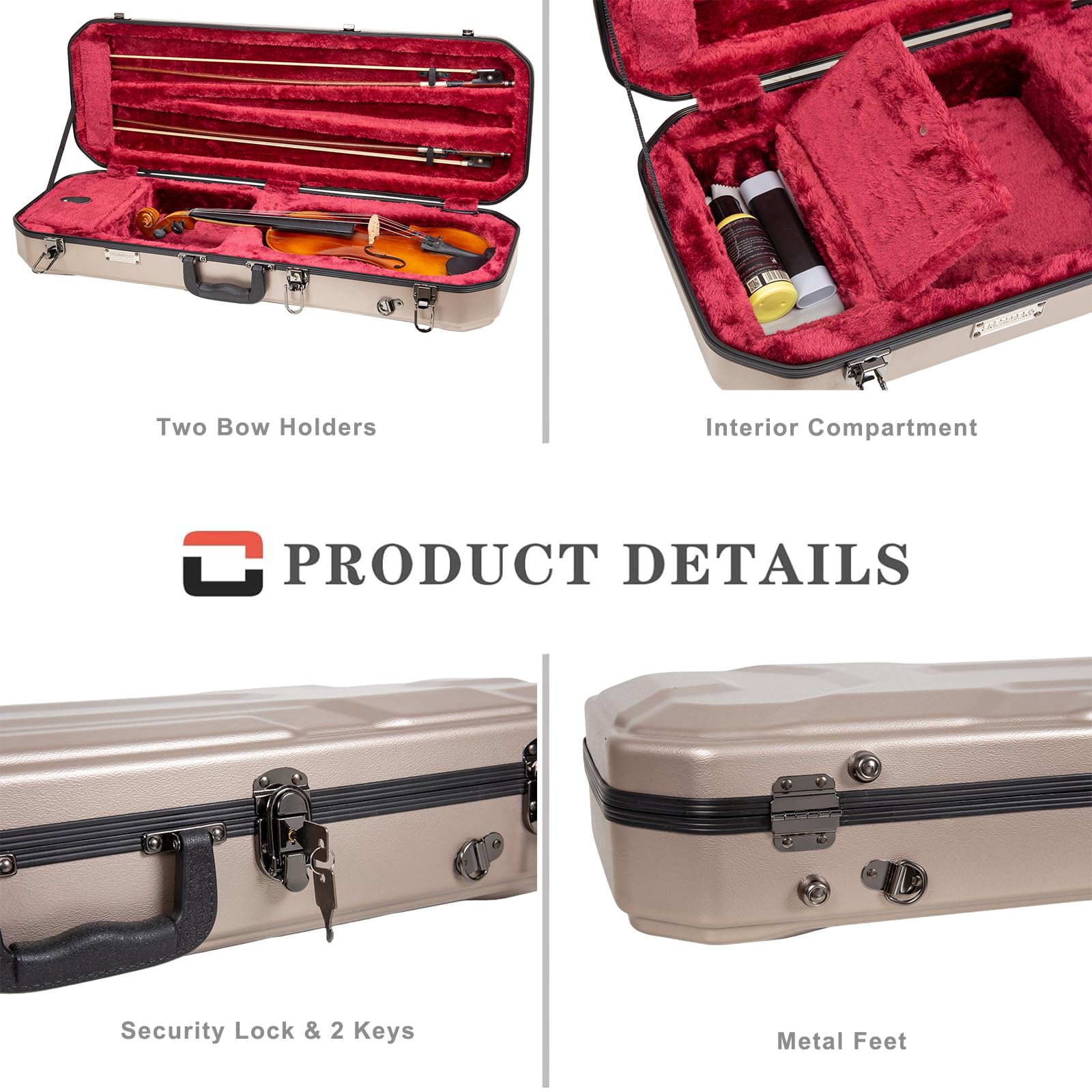 【STORAGE】Comes with two bow holders, and also features an accessory compartment to store your rosin, keys, and other valuables.