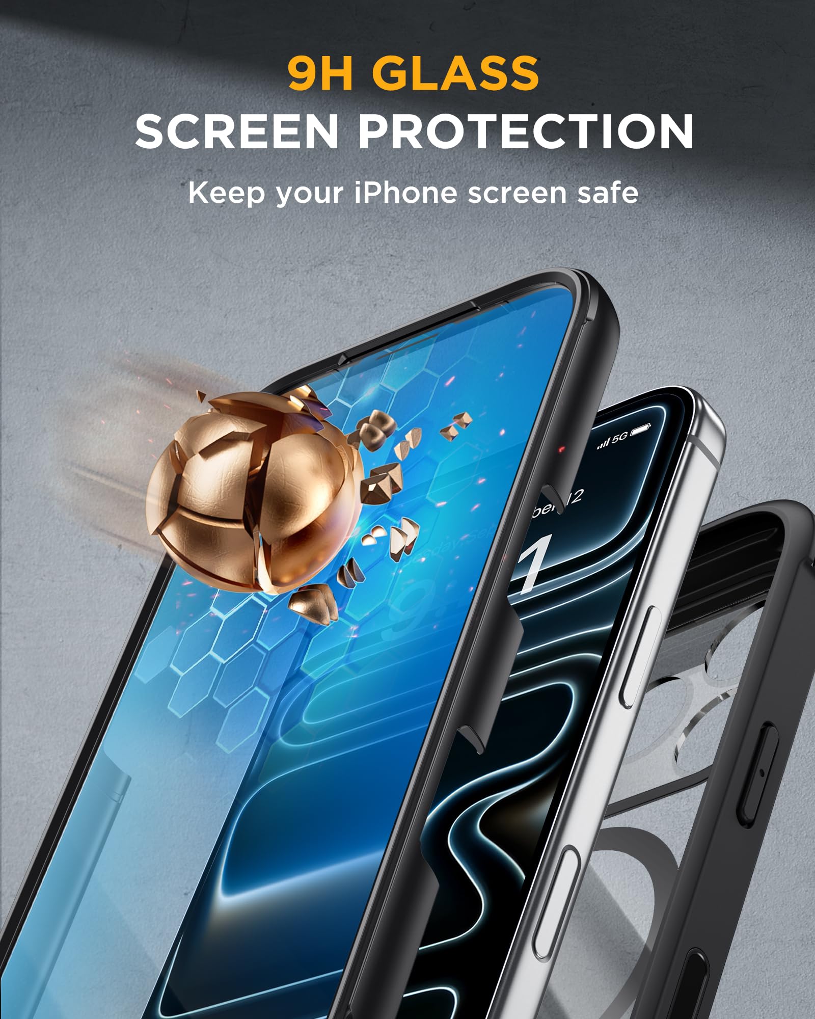 【Bubble Free Built-in 9H Glass Screen Protector】Miracase for iPhone 17 Pro Max case with built-in full screen protector protect your phone screen from scratches and cracks, no gap and won't lift up the screen,and making you enjoy the sensitive touch without bubbles