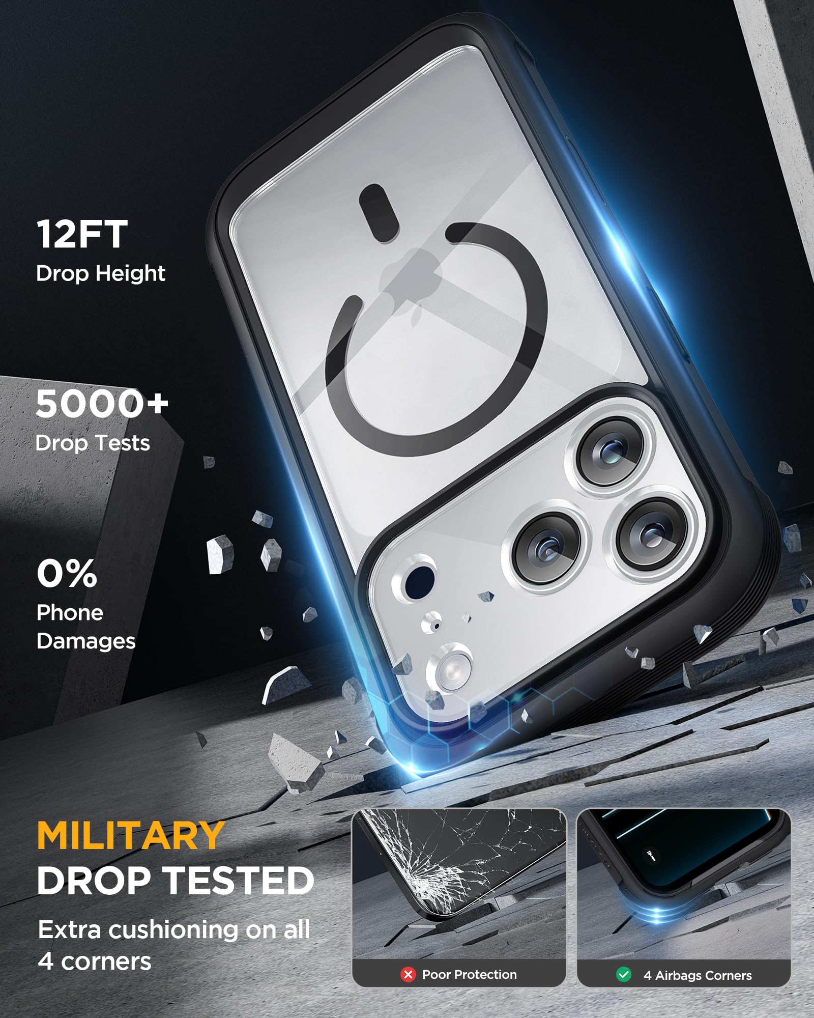 【Fit All Magnet Accessories】Miracase for iPhone 17 promax phone case built in upgraded 3rd generation magnet ring, locking and compatible with magsafe accessories, wireless charging is faster, easier, and safer. The powerful magnetism support charging from any angle, and there is no need to worry about the charger separating from the phone anymore