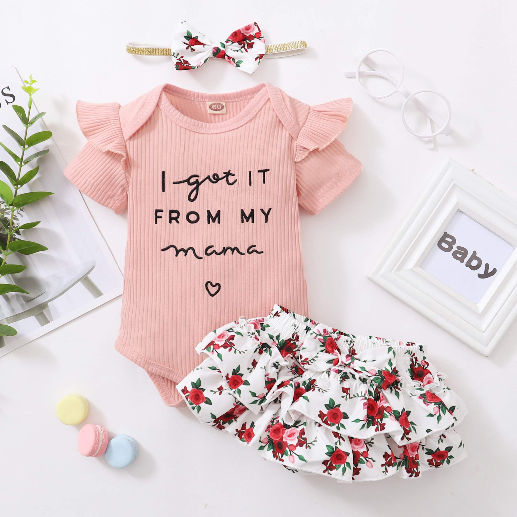 Great Quality: Cotton ribbed baby girl romper shorts set bring comfortable feelings. Soft, safe and harmless to baby's skin. Pretty baby girl clothes for gifts
