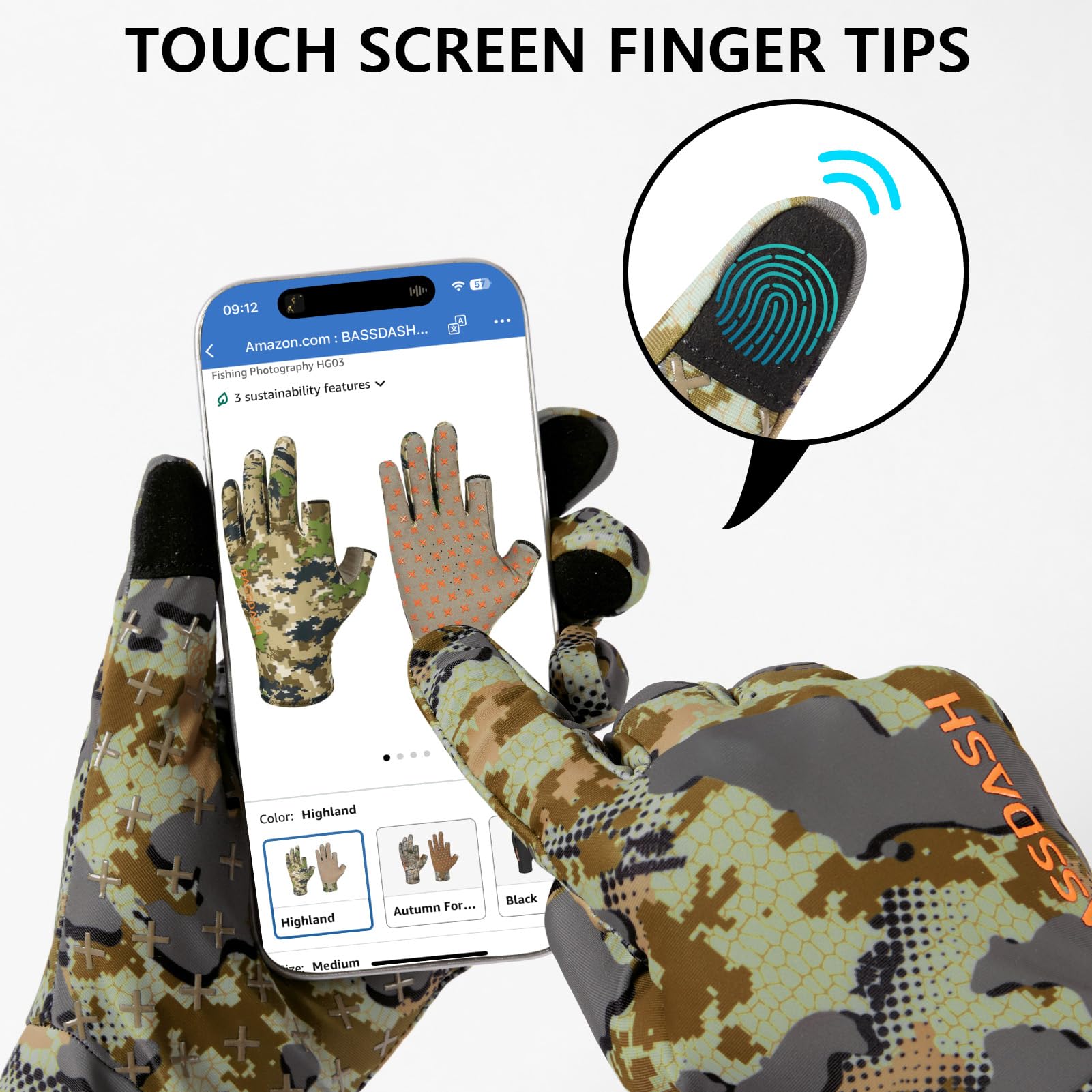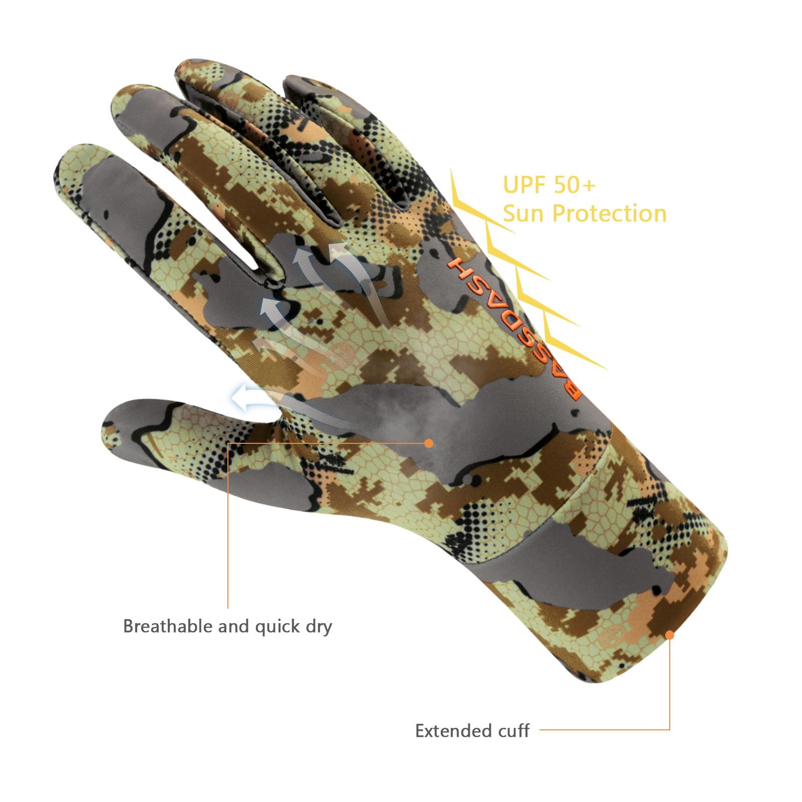 Description BASSDASH Men’s Camo Hunting Gloves UPF 50+ Lightweight Touchscreen Gloves for Warm Weather Fishing Hiking Outdoor Activities HG01M