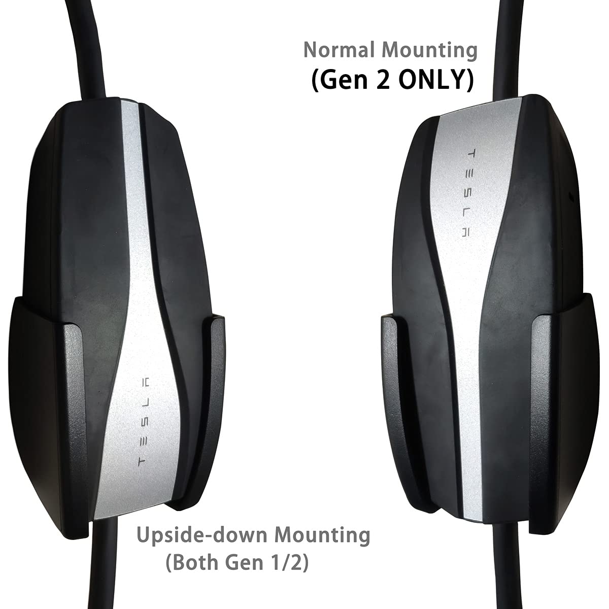 This set of Tesla mobile charger wall mount organizer is well made of high quality solid plastic, easy to install and let you have a private charging station in your garage that is easy to use and uncluttered. It makes the charging cable looking neat and organized, no wires touching the floor. It also gives you the ability to remove the charger and take it with you when traveling. You will be getting one cable organizer bracket and one charger controller holder. Comes with UPGRADED high-strength screws. ATTENTION: 1. This UMC holder is specifically designed for Tesla Gen 2 universal mobile connector. For Gen 1 charger controller, you could ONLY mount your charging unit UPSIDE DOWN, and it will be too loose inside if you mount it as the way normal mounting. Please see pic 3 for details. 2. If your outlet does not flush with the wall and the cable is not long enough for protruding outlet, please buy another option which comes with a riser base/backing. (I also sell it)