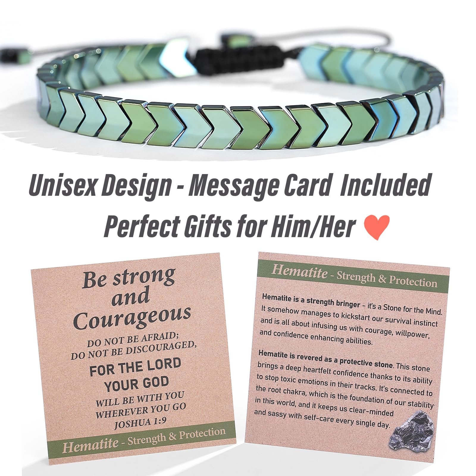 【Meaningful Card & Solid Craftsmanship by Great Artisan】Coming with meaning card which explaining the benefits of the stones and encouragement message 'Be strong and courageous... JOSHUA 1:9', it makes your gift unique and a big hit to him. Solid Craftsmanship make sure it's super comfortable for daily-wear and will not easily fall off/come apart. This meaningful and cool crystal bracelet can be worn and protect him for a long time.