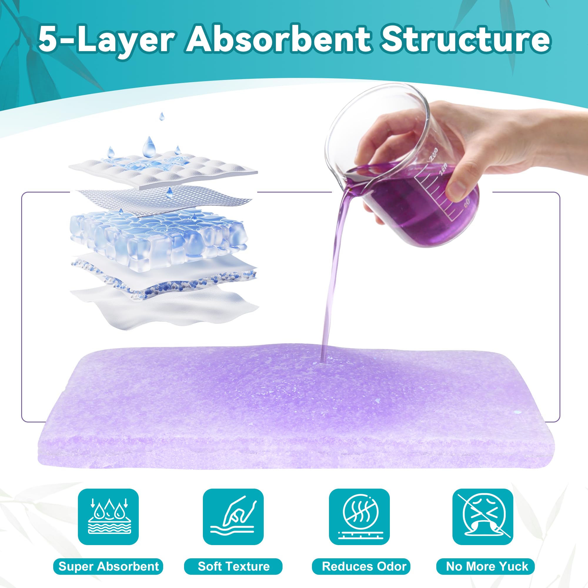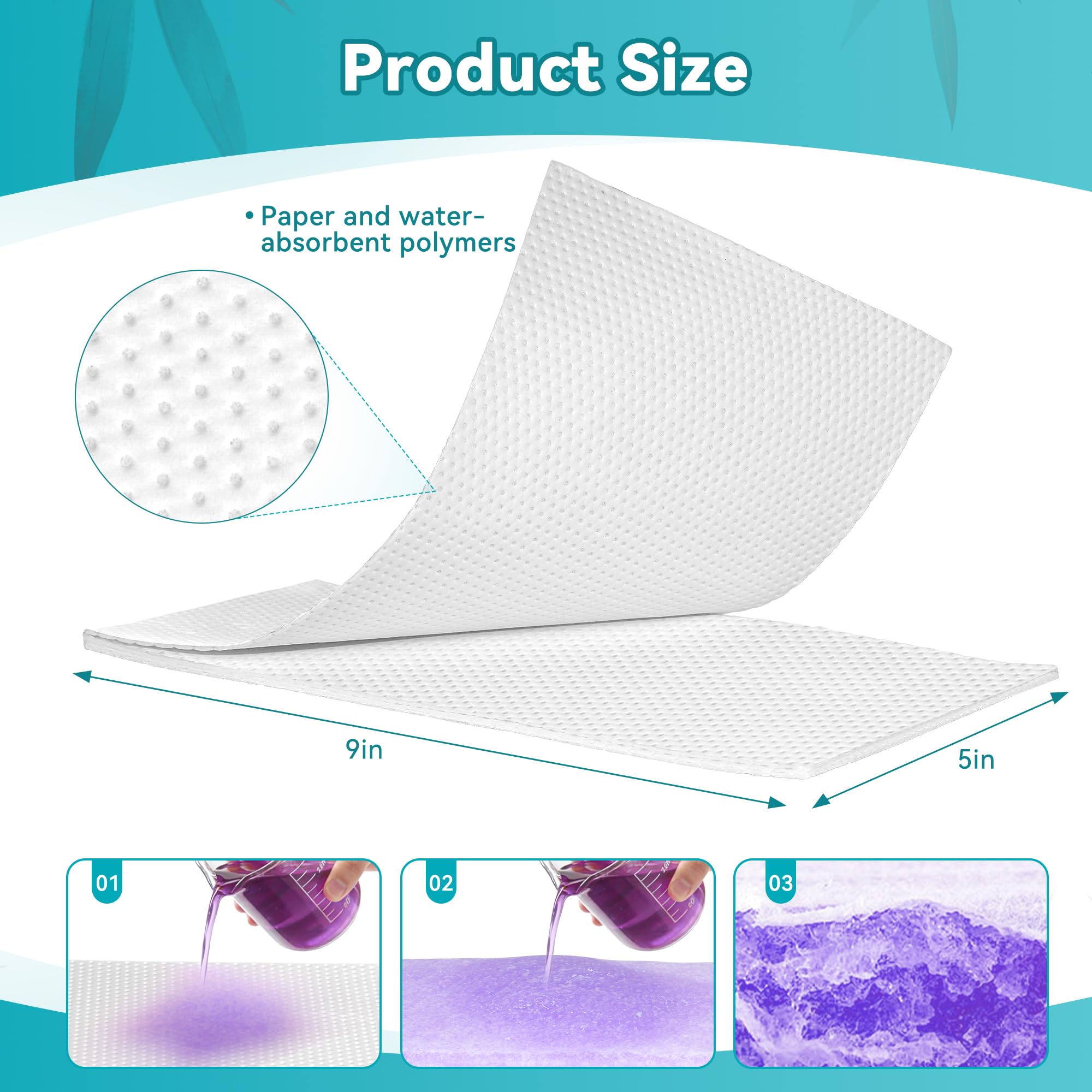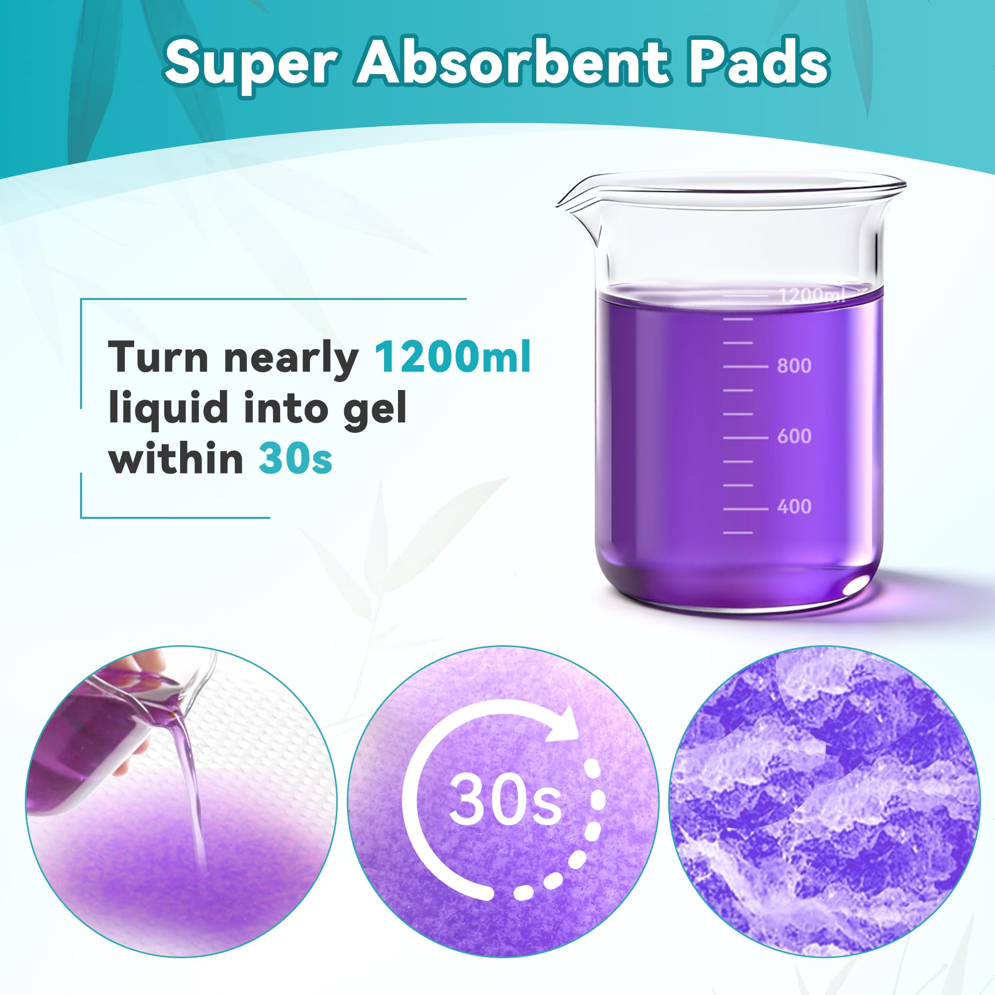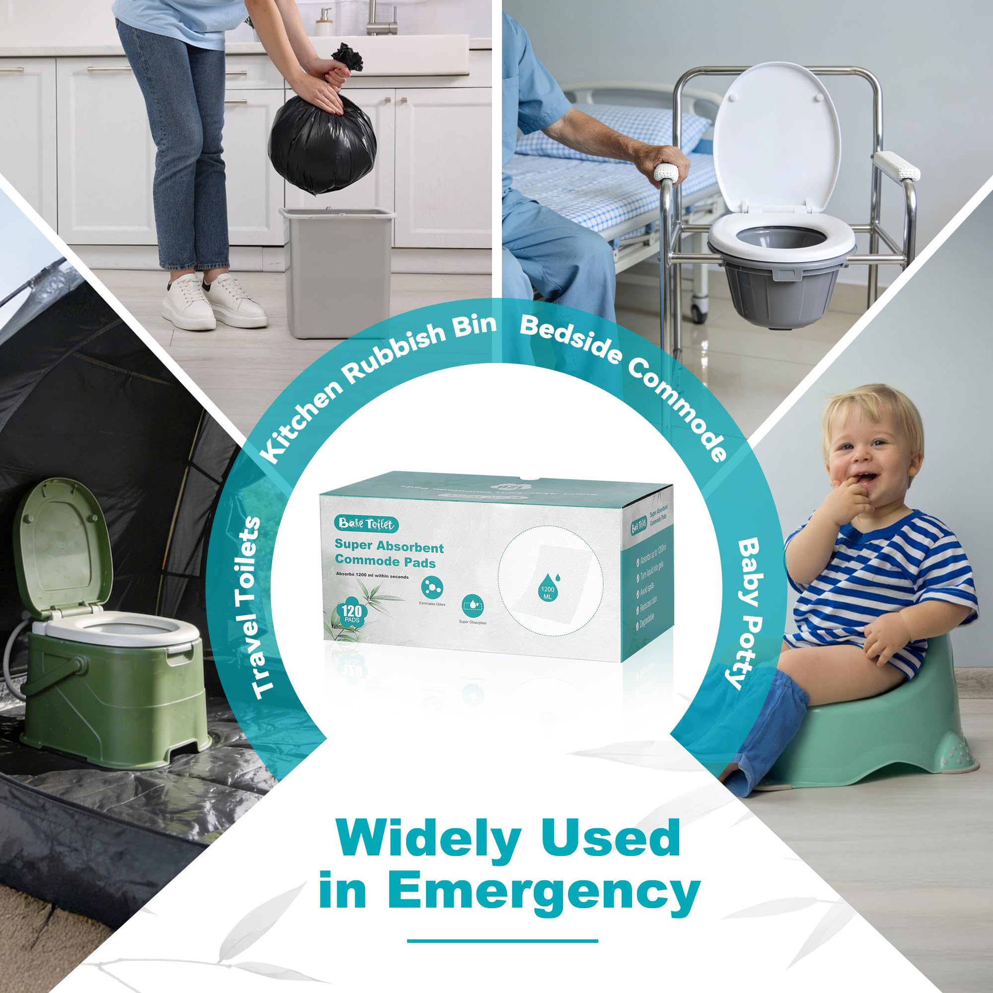 Super Absorbent Commode Pads: Multiple absorption structures overlap, soft texture, thick. It contains 120 highly commode pads per set. Each absorbent pad can turns up to 42 oz(1200 ml) liquid maximum/19 oz(540 ml) body fluids into gel within seconds. And allow liquids to solidify without worrying about spills.