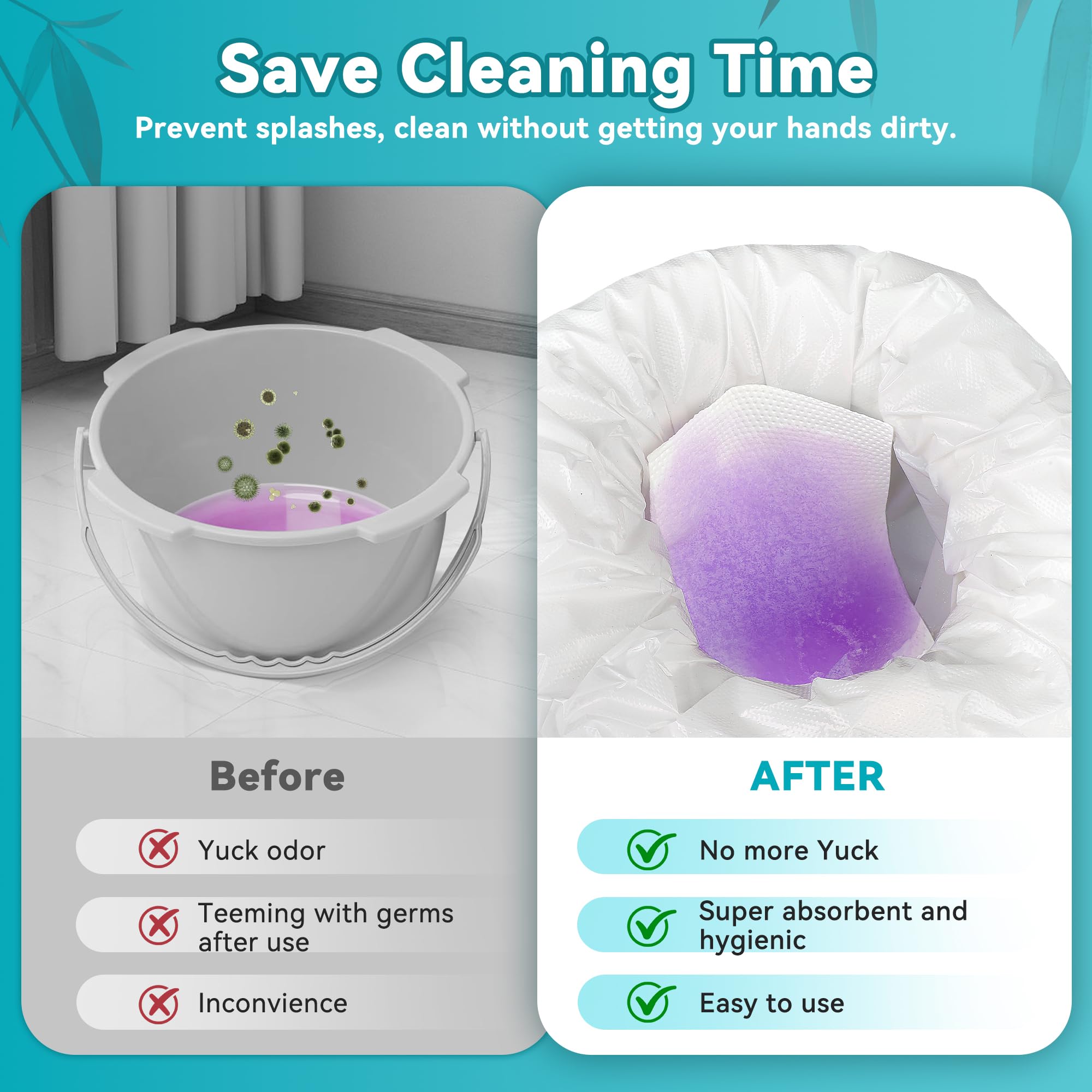 Easy to Use: Absorbent pads for commode make bedside care simpler and more efficient. Just place one commode liners pads in the commode bucket or liner to instantly absorb fluids, eliminating the need to clean after every use and saving valuable time for caregivers. Made from eco-friendly virgin wood pulp and SAP polymer, they offer a secure, hygienic solution that’s both gentle on users and kind to the environment.