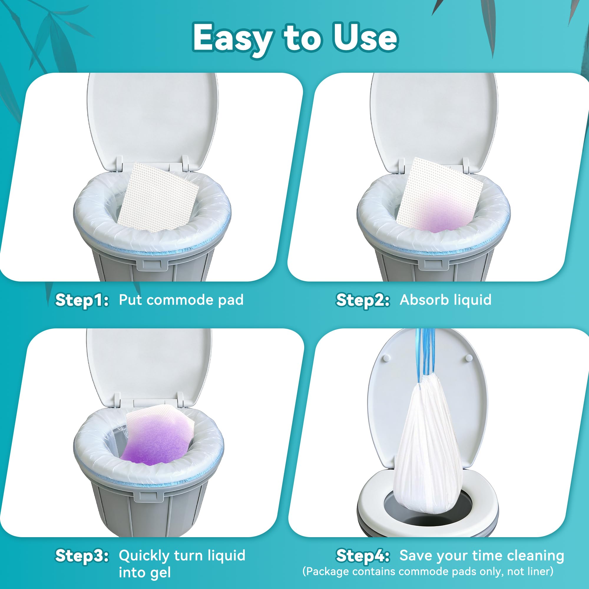 Universal Fit: Commode pads are designed to perfectly fit all standard bedside commode buckets, adult potty chairs, camping toilets, bedpans, and disposable portable toilets. Simply place one pad inside your commode bucket or liner—it works seamlessly with any brand of commode liner, giving you the freedom to choose what works best.