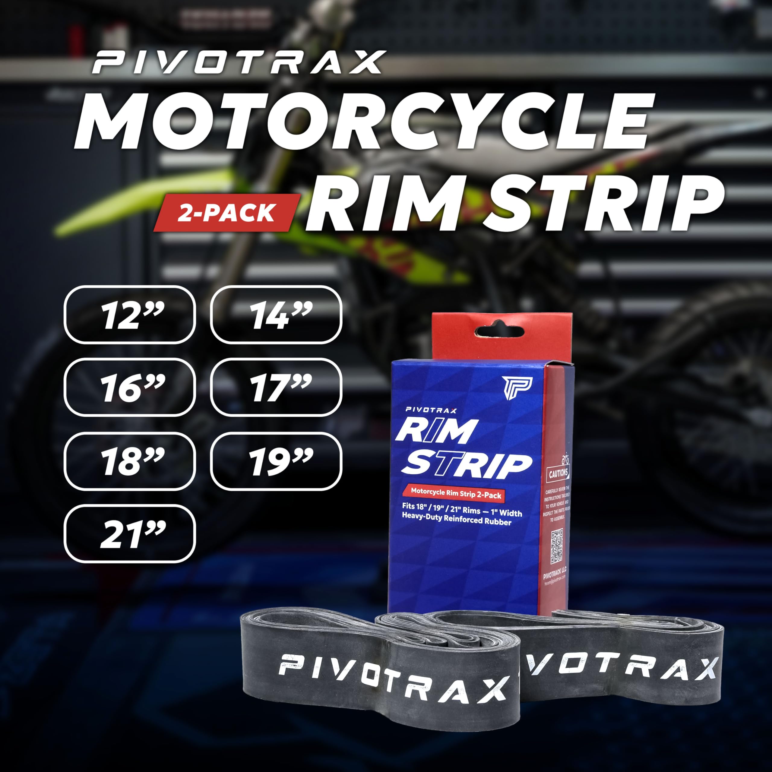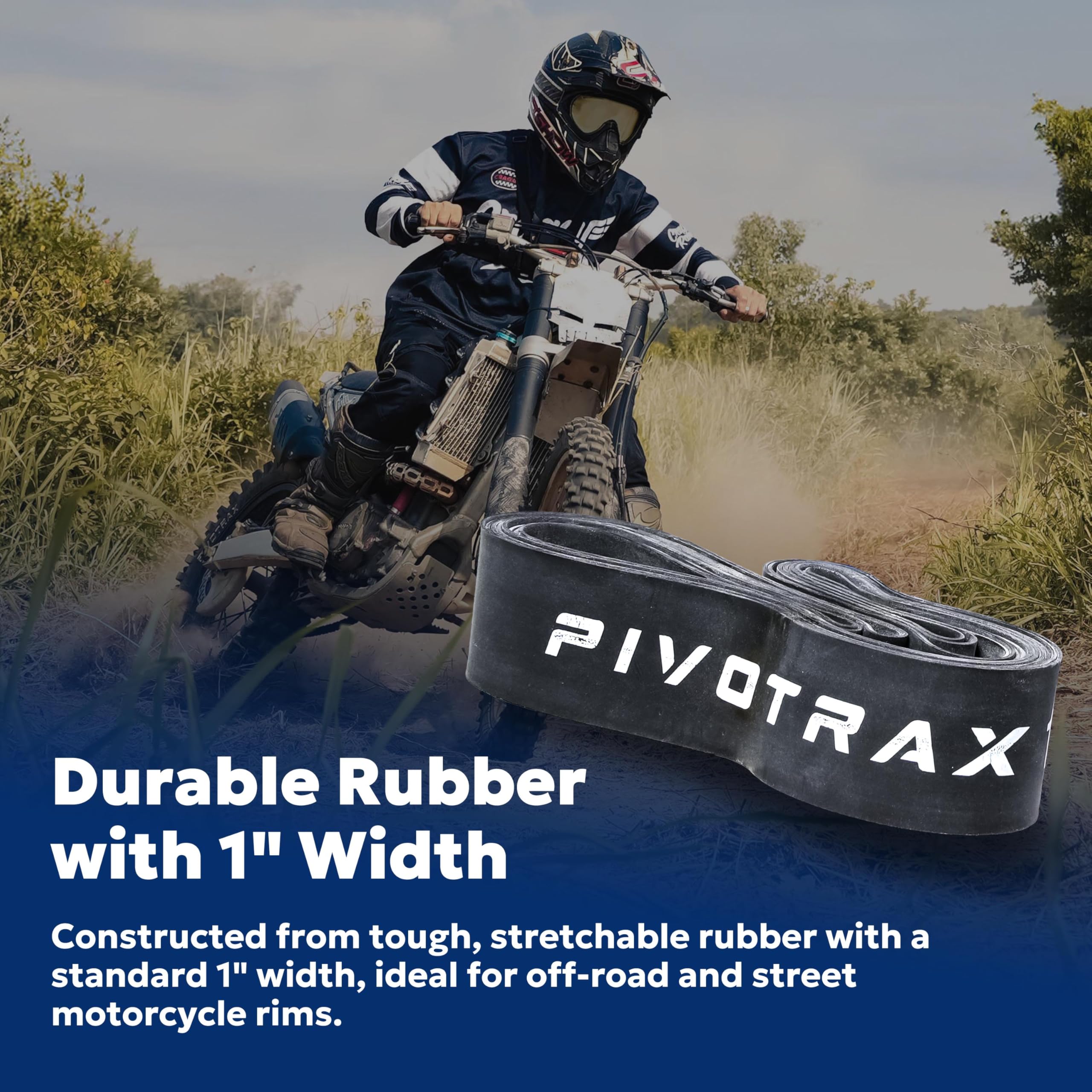 Give your motorcycle wheel proper tube protection with the PIVOTRAX Rim Strip. Made from durable and flexible rubber, this 1-inch wide rim tape fits securely inside the wheel to guard inner tubes against damage from spoke nipples. It features a pre-cut valve stem hole for fast and accurate installation. Ideal for both off-road and on-road use, this essential strip is available in 18", 19", and 21" sizes to fit a wide range of motorcycles. Replace old or missing rim strips during tire changes to enhance safety and prevent avoidable flats.
