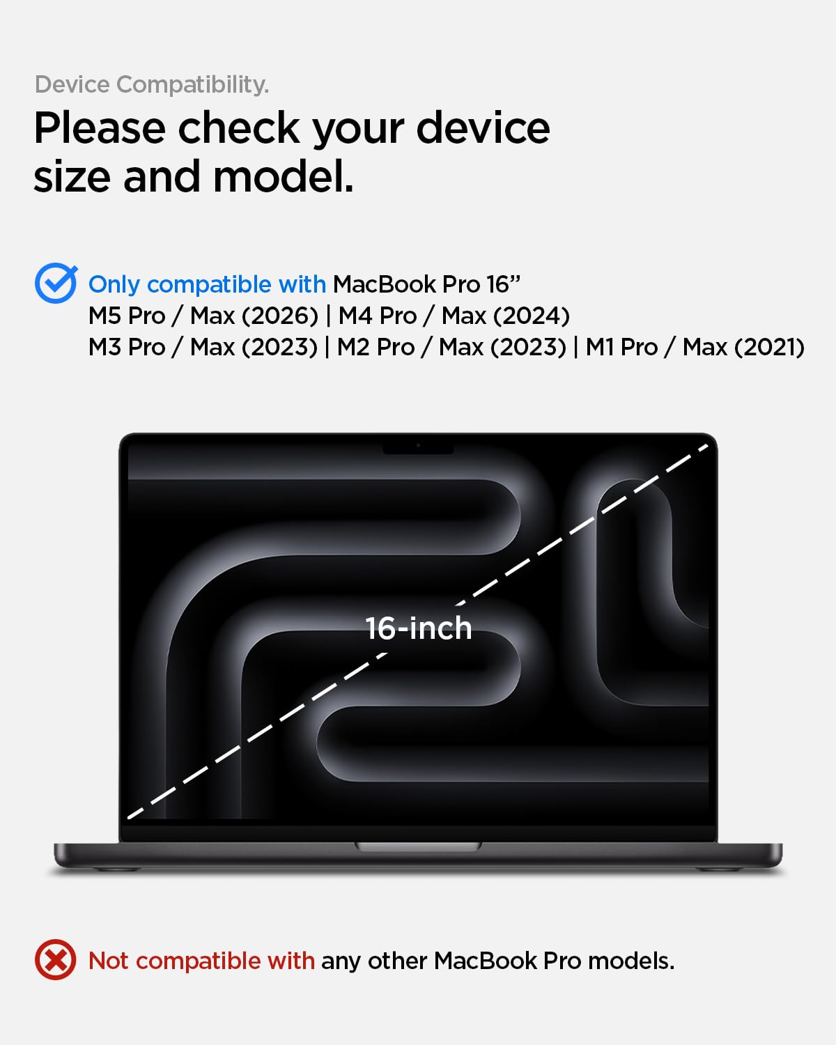 Check for Compatibly: Only designed for 2026 MacBook Pro 16 inch (M5 Pro / M5 Max), 2024 MacBook Pro 16 inch (M4 Pro / M4 Max), MacBook Pro 16 inch (M3 Pro / M3 Max), MacBook Pro 16 inch (M2 Pro / M2 Max), MacBook Pro 16 inch (M1 Pro / M1 Max)