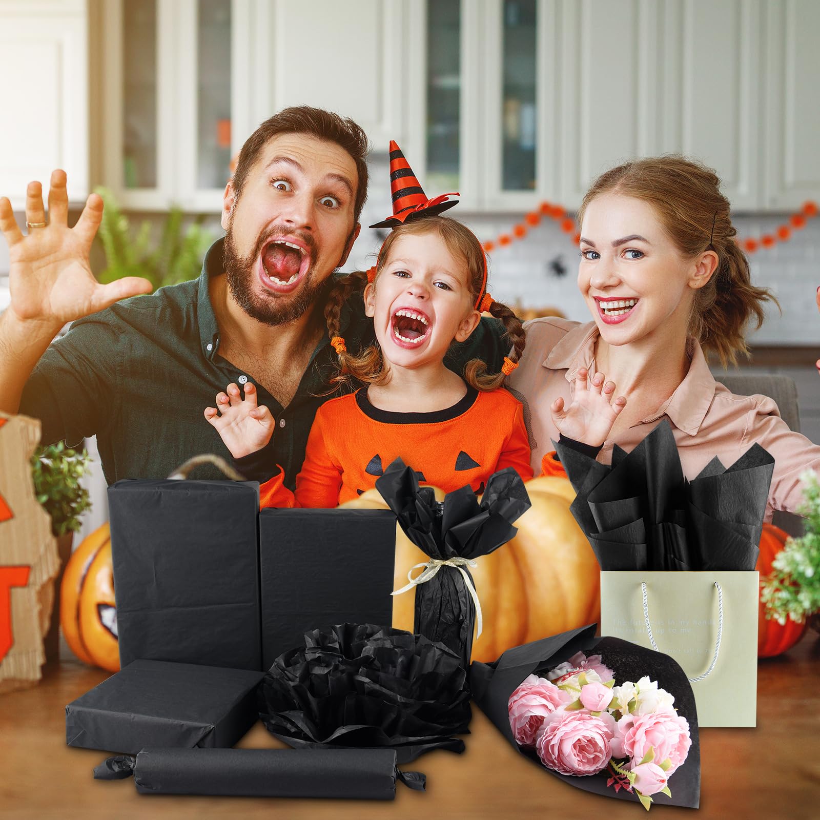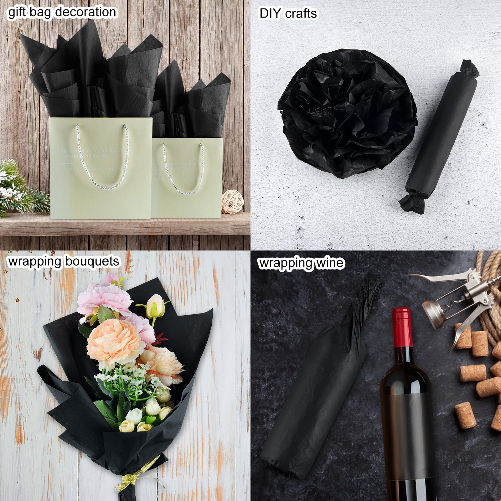 Multiple Uses: Black wrapping paper is a pleasant choice for wrapping gifts, gift bag decoration, gift box filling, wrapping bouquets, wine packaging, DIY crafts, paper flower making, basket liners